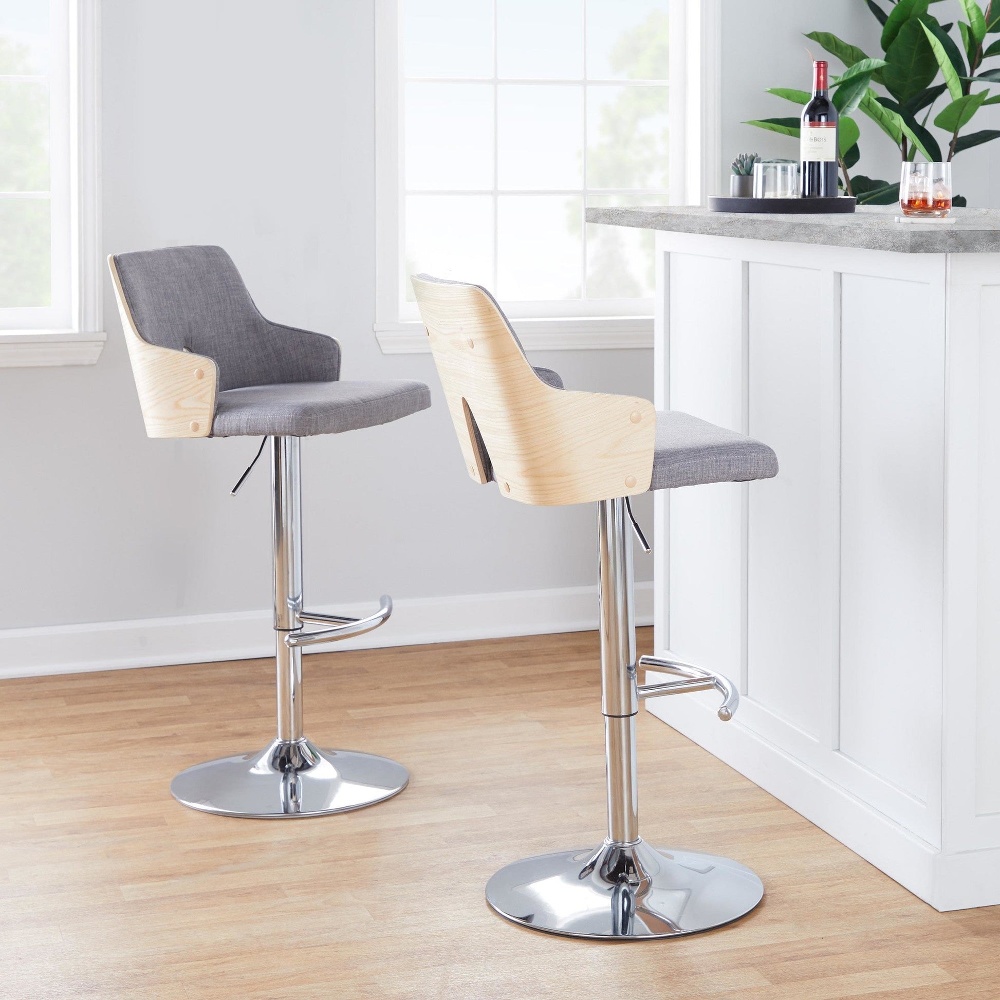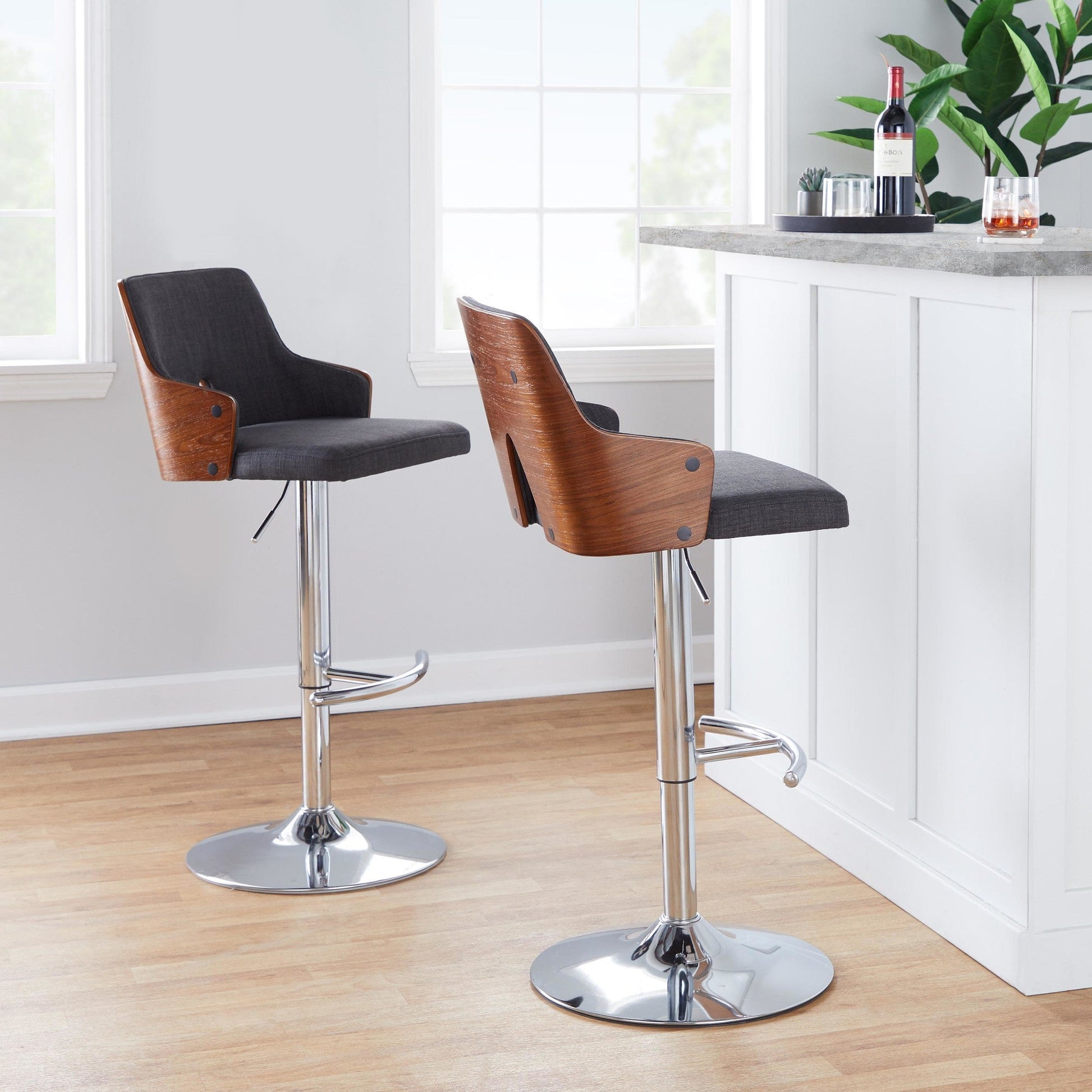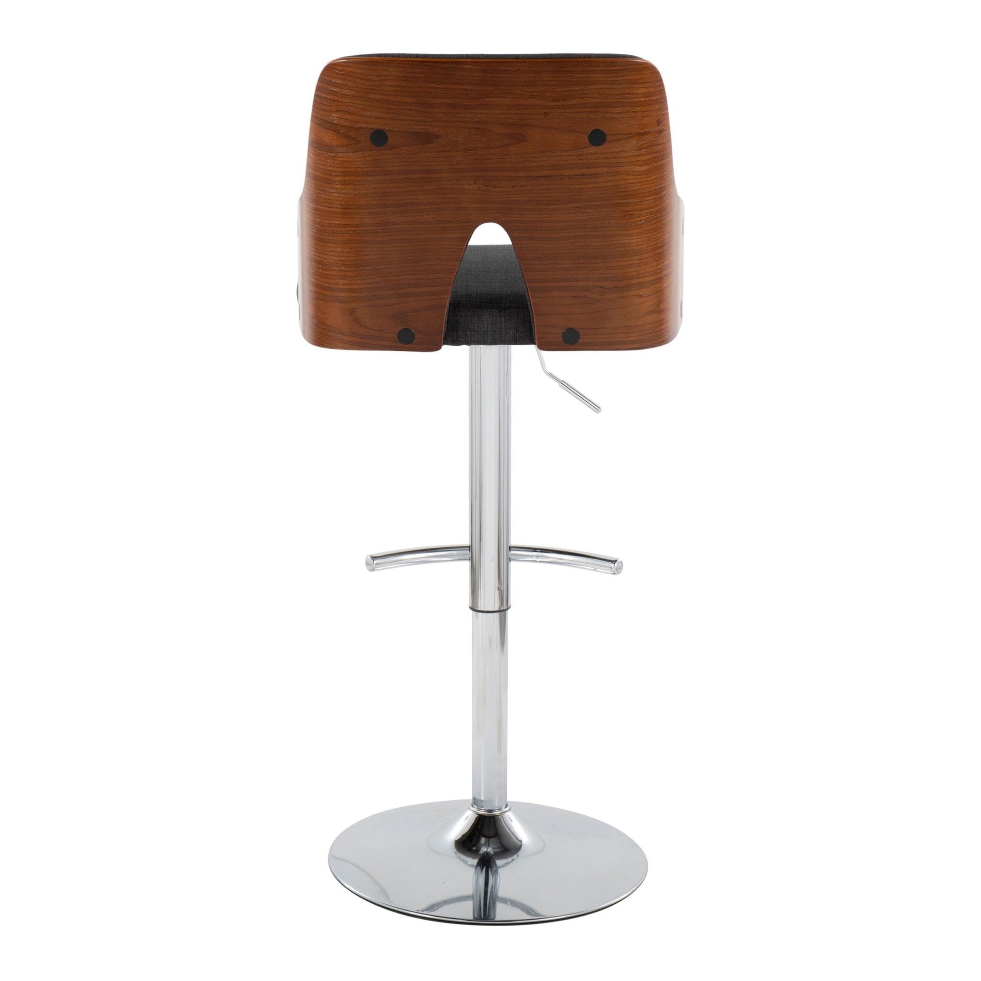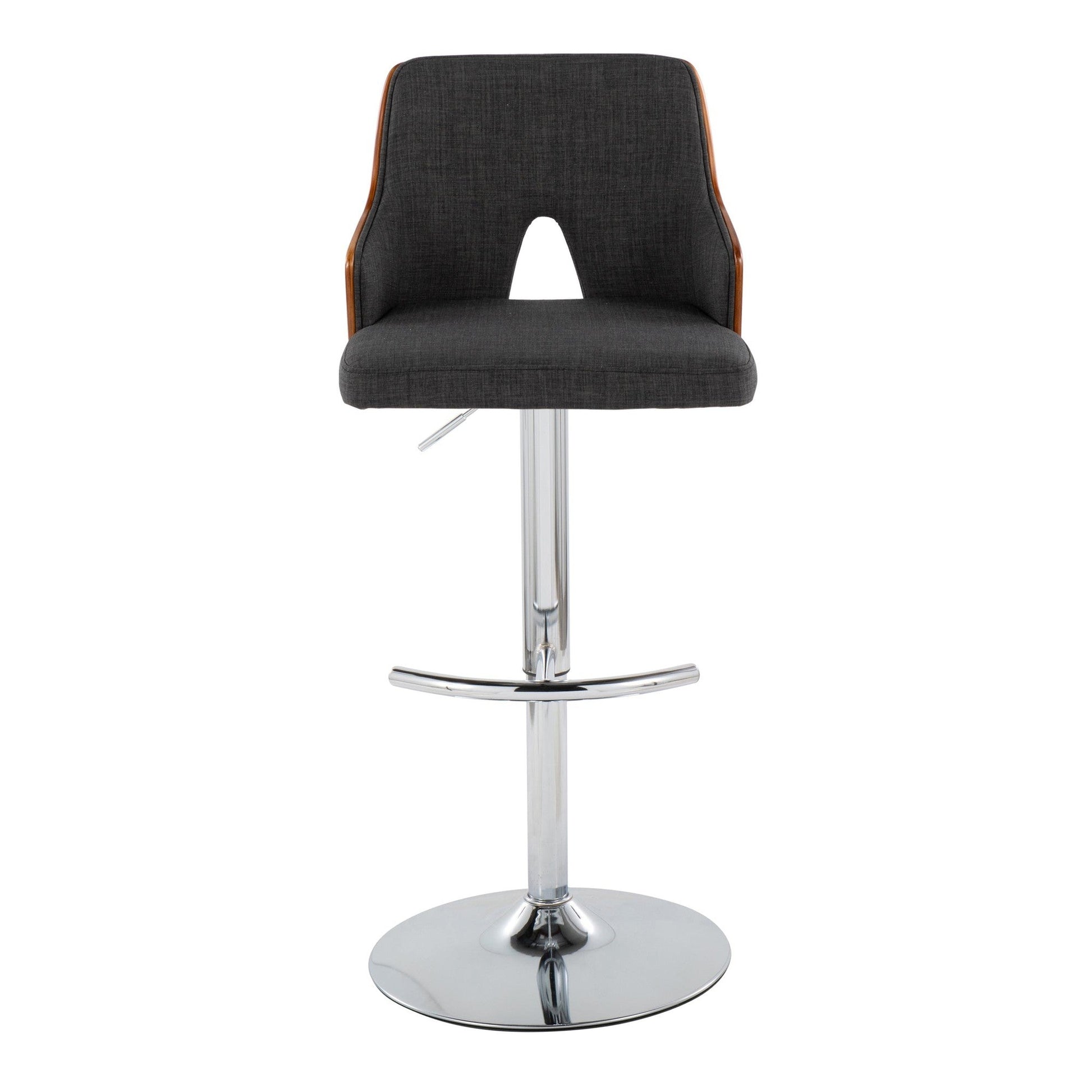 With its peek-a-boo wood back, the Adjustable Barstool by Majestic Office Furniture is both playful and refined, spirited and sophisticated. Add the understated wood armrests, fabric seat, and adjustable metal base, this design is perfect for any space or decor style. Available in various color.