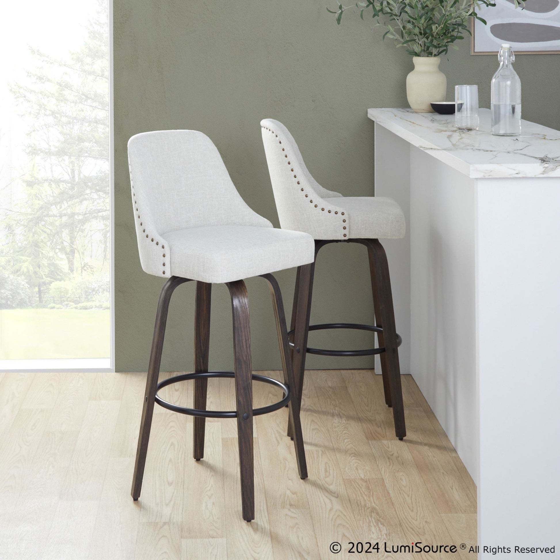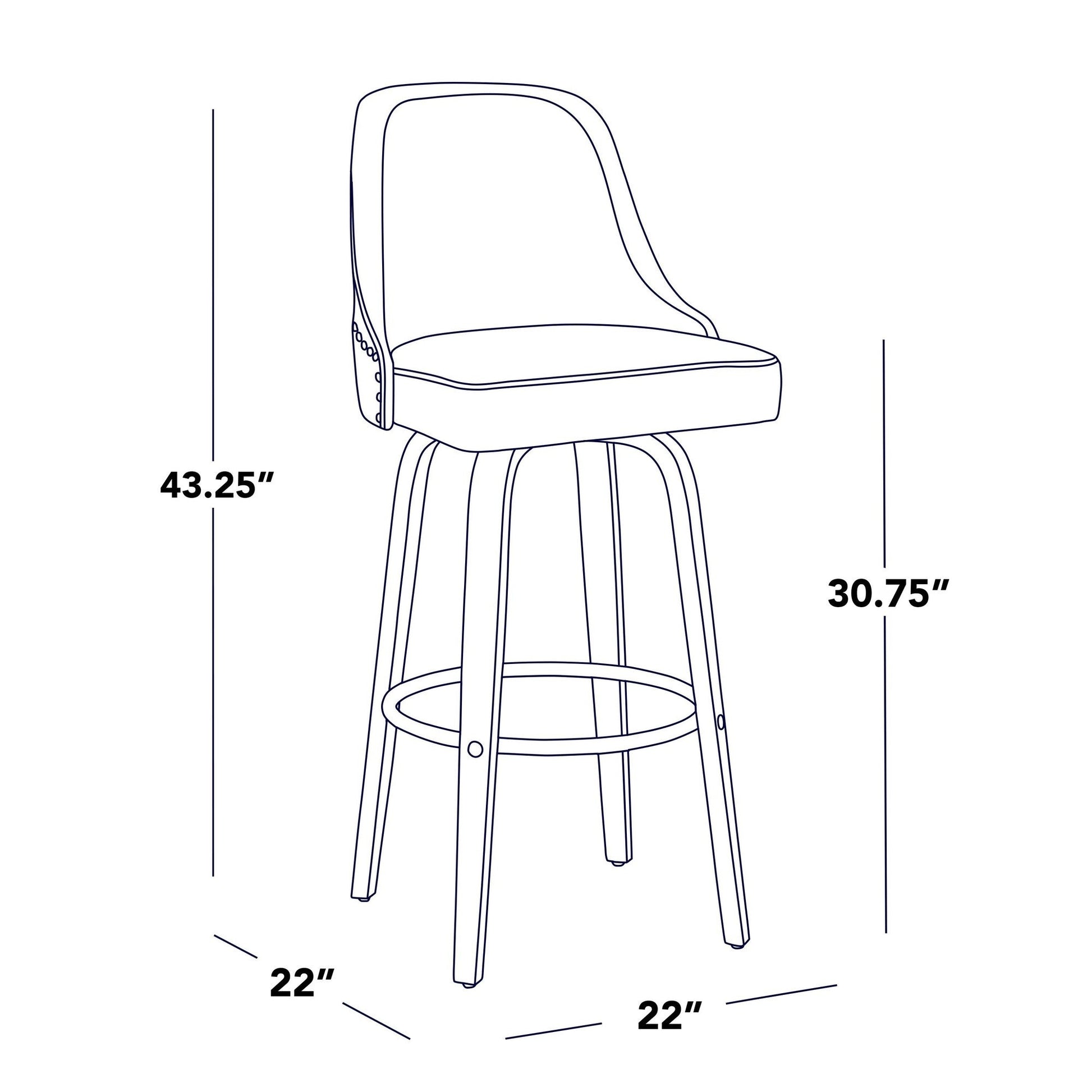 Introducing the Marcel Barstool by Majestic Office Furniture, a stunning piece that combines modern style and timeless charm. Crafted with a plush, upholstered seat and a backrest adorned with decorative studs, this swivel stool adds a touch of elegance to any home bar or kitchen. Featuring sturdy tapered bent wood legs, the Marcel Barstool is built to last and provide exceptional comfort, making it the perfect addition to your living space.