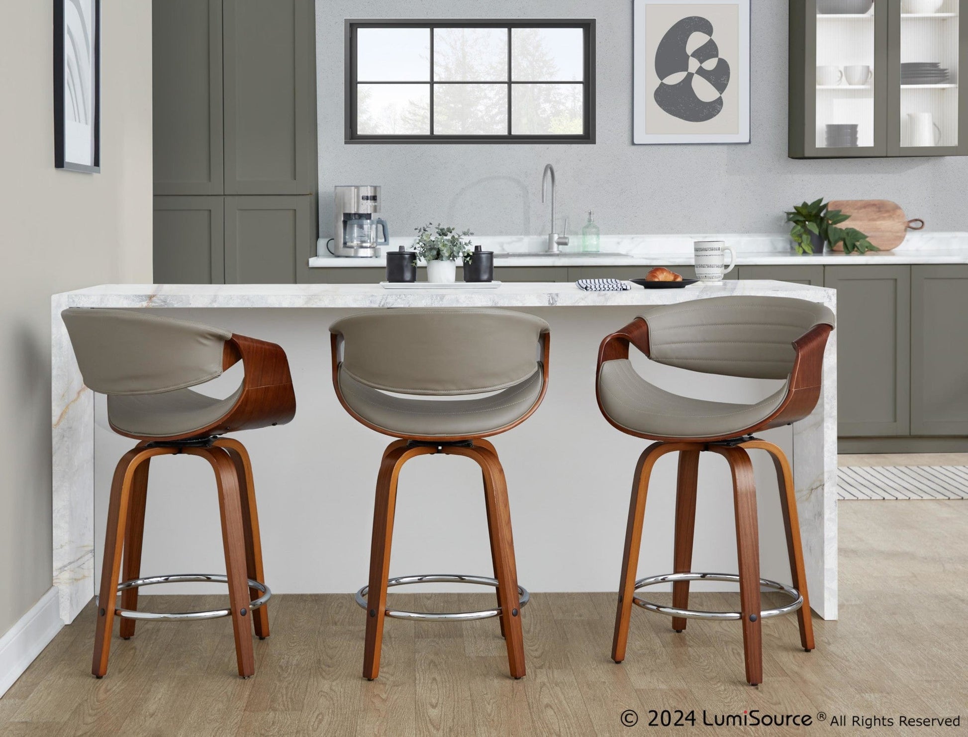 Elevate your kitchen counter or dining area with the Counter Stool by Majestic Office Furniture. Crafted with a sleek walnut wood frame and chrome footrest, this counter stool combines modern style with timeless comfort. The tufted faux leather seat offers a luxurious perch, while the bentwood design adds an organic touch to any space. Bring refined elegance to your kitchen counter or dining area with the sophisticated Counter Stool.