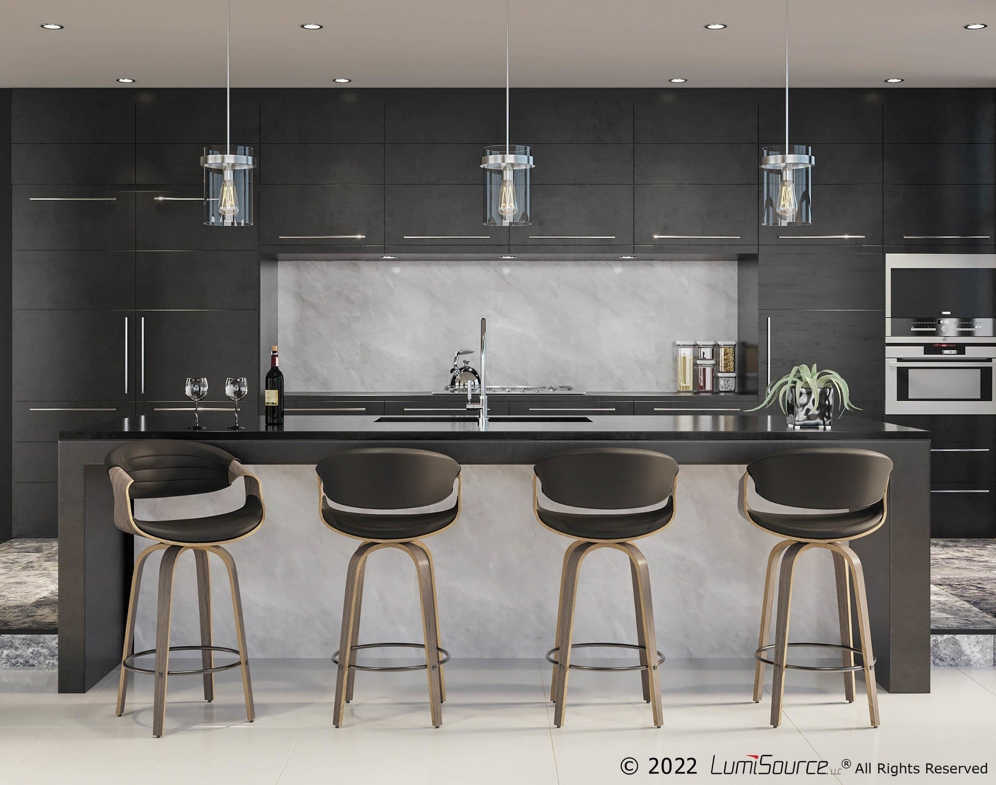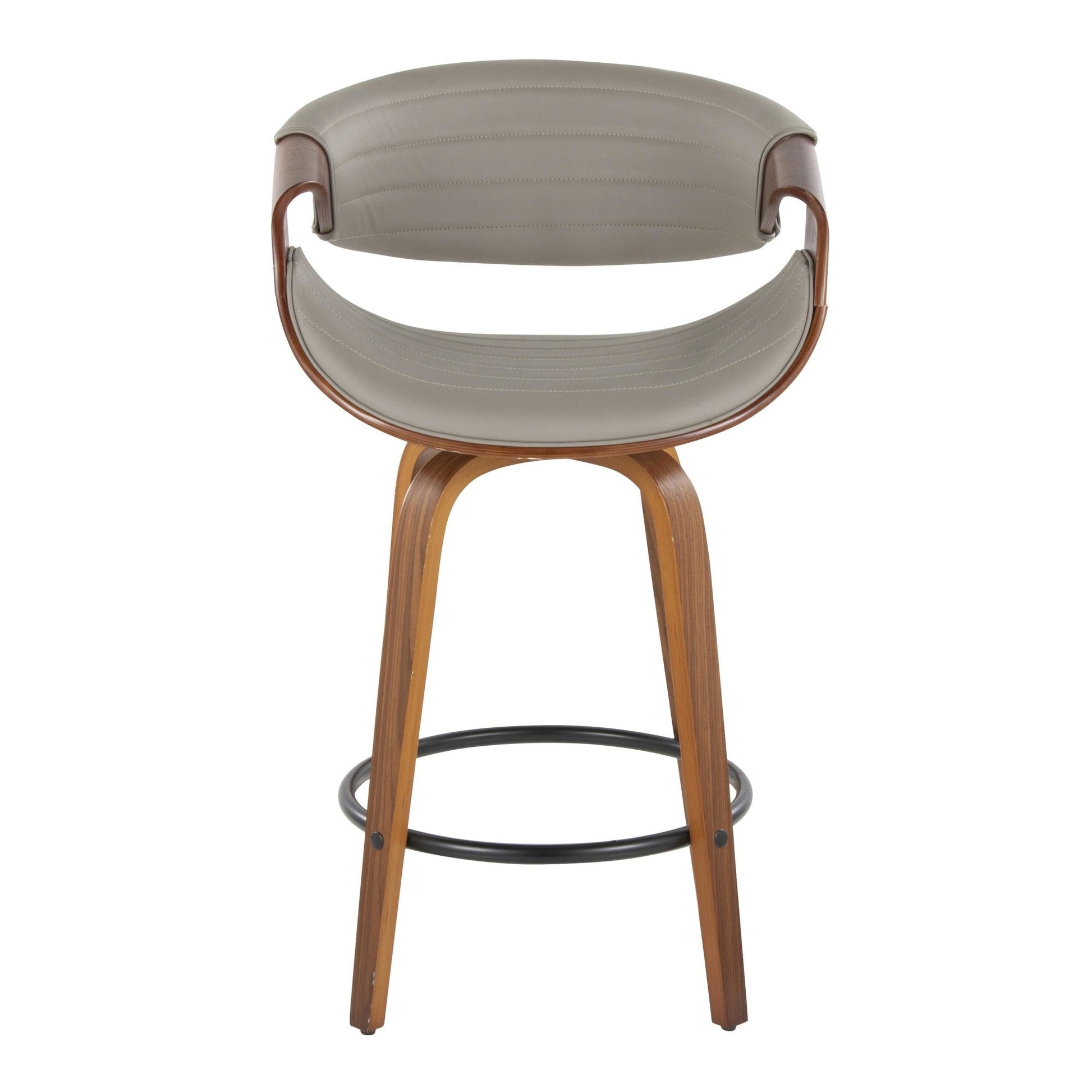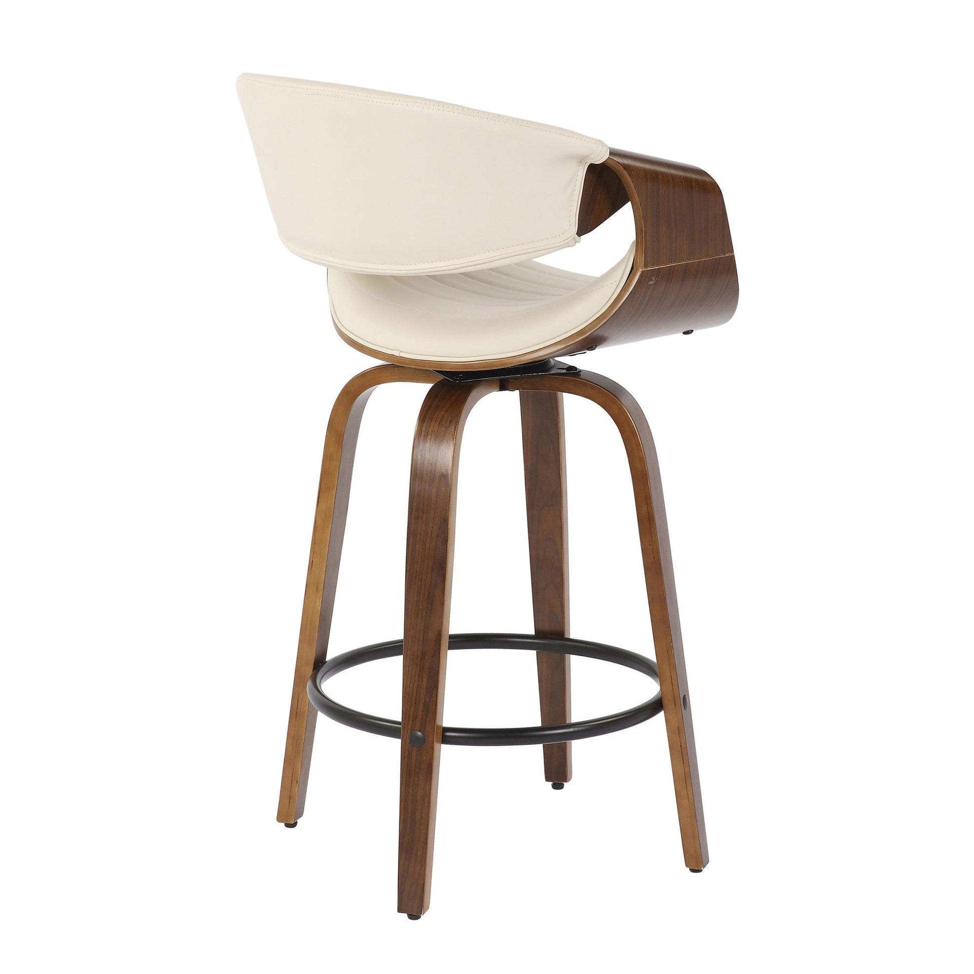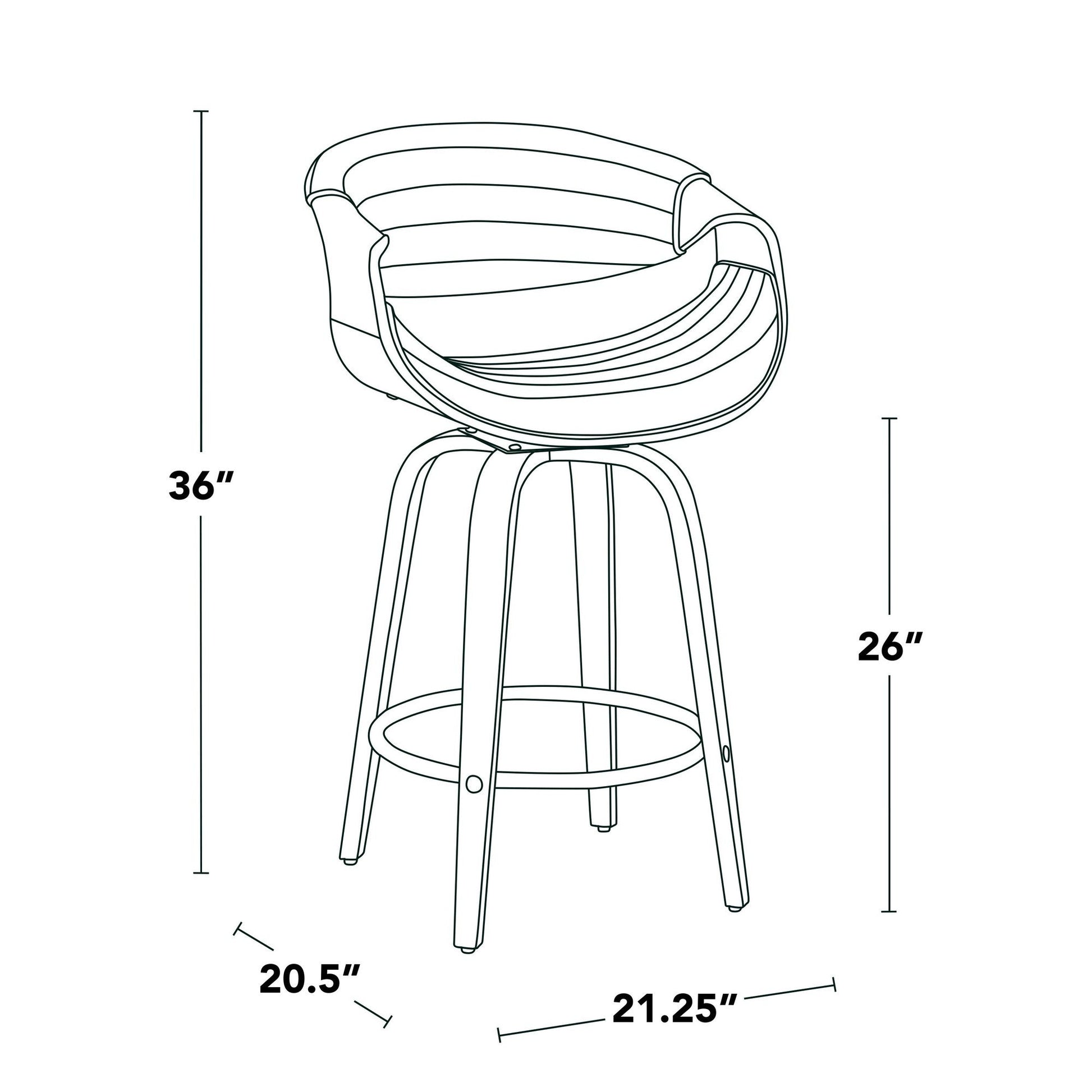 A curvaceous dose of Mid-Century style, the unique design, and silhouette of the Counter Stool by Majestic Office Furniture will look great pulled up to any counter! Upholstered in a sleek faux leather accented with vertical tufting and walnut colored bent wood legs, the comes in a variety of colors to fit in any room.