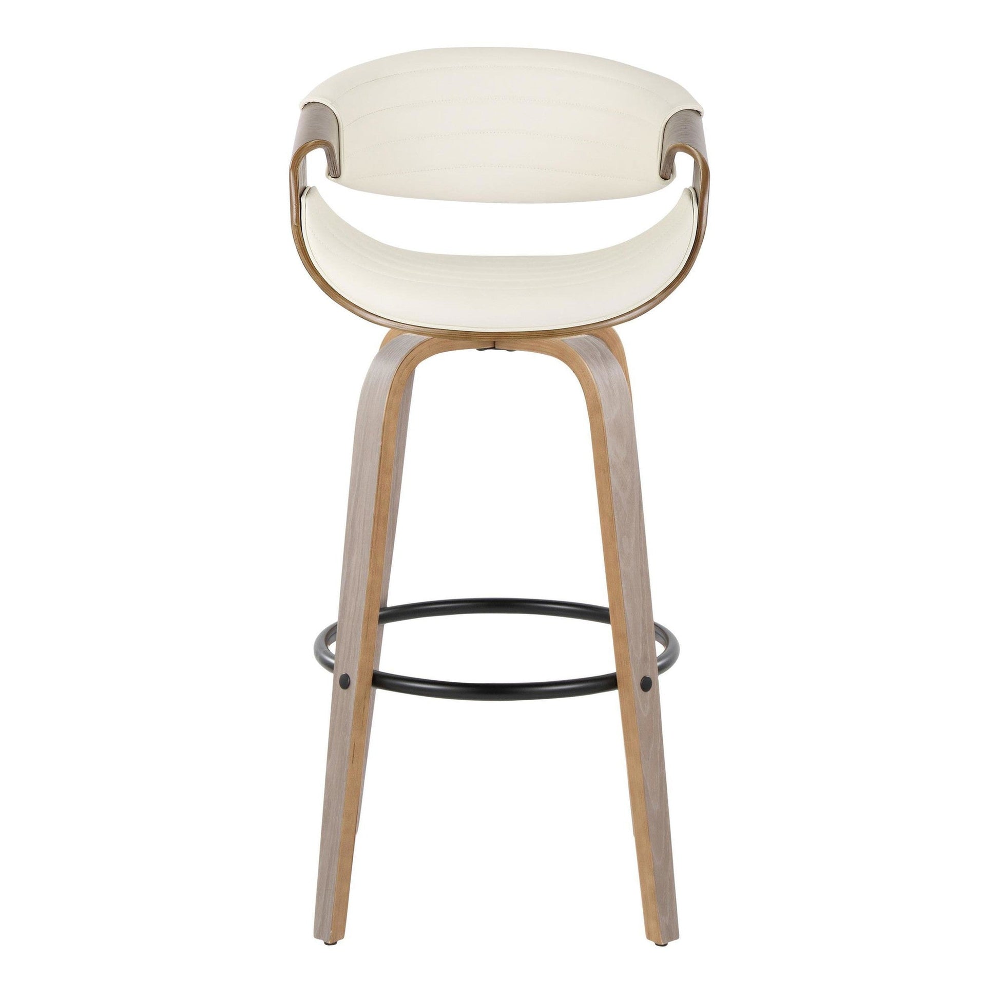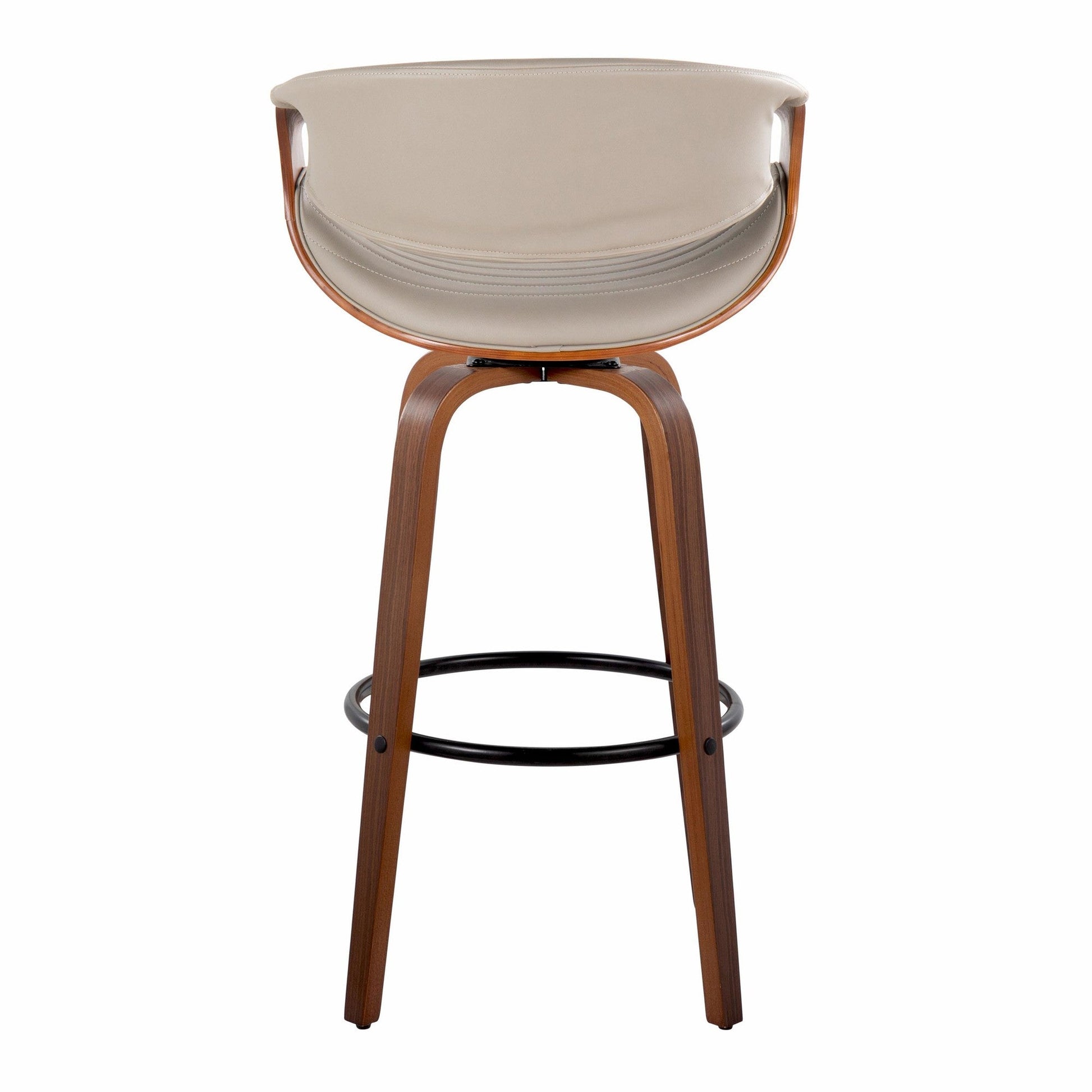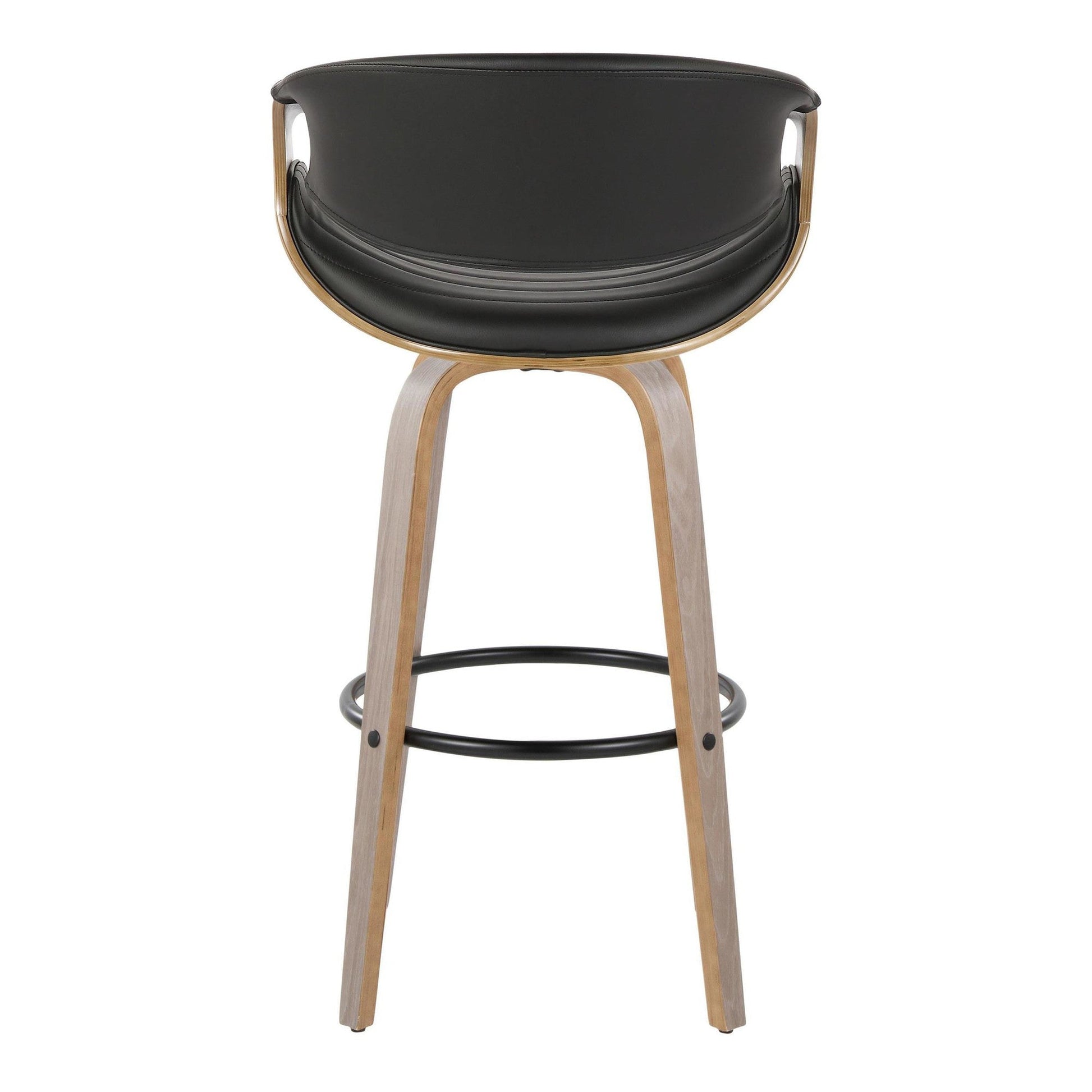 Bent wood legs with round black metal footrest