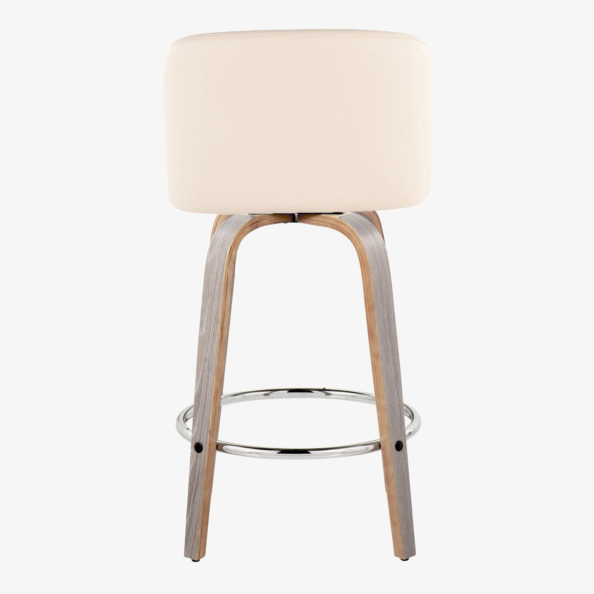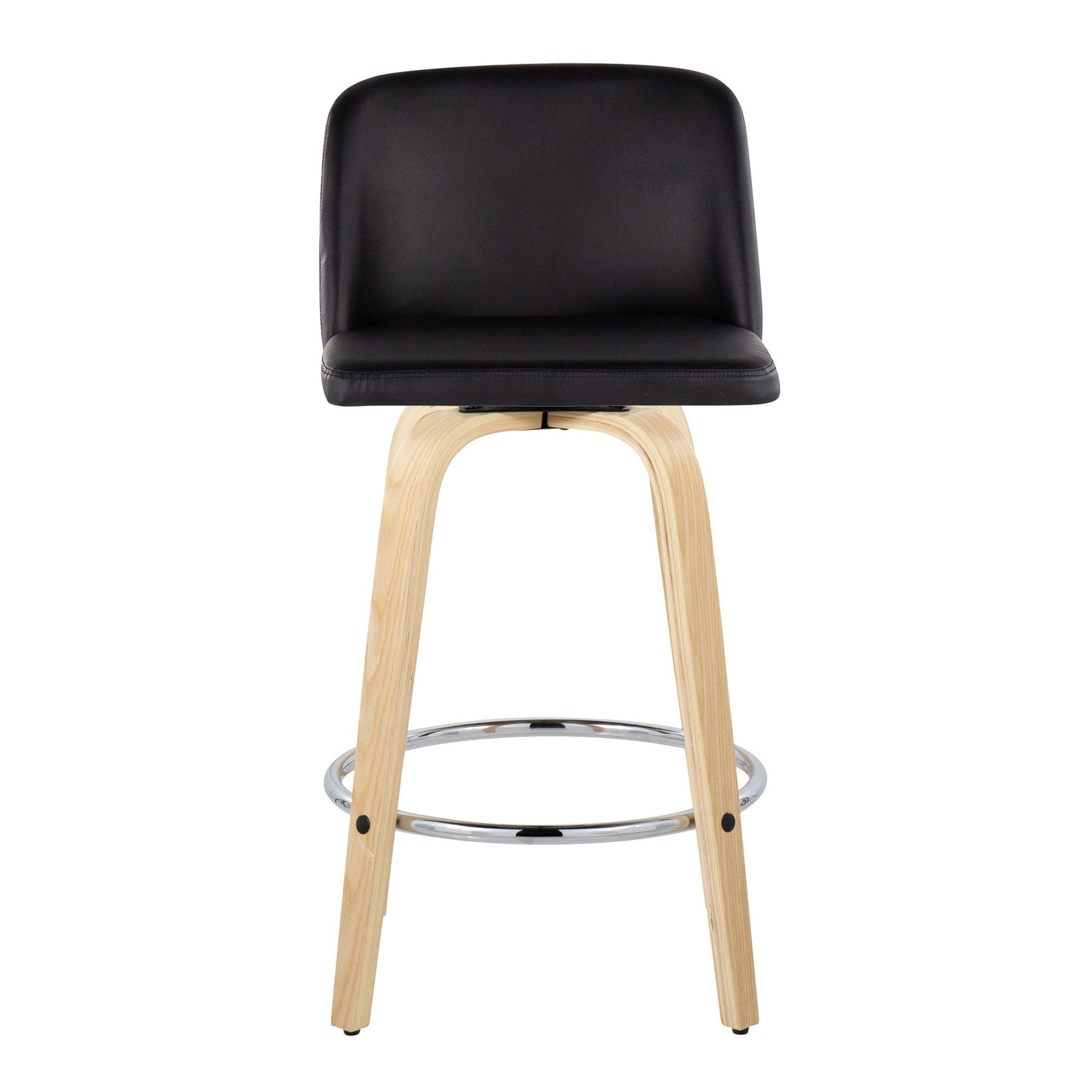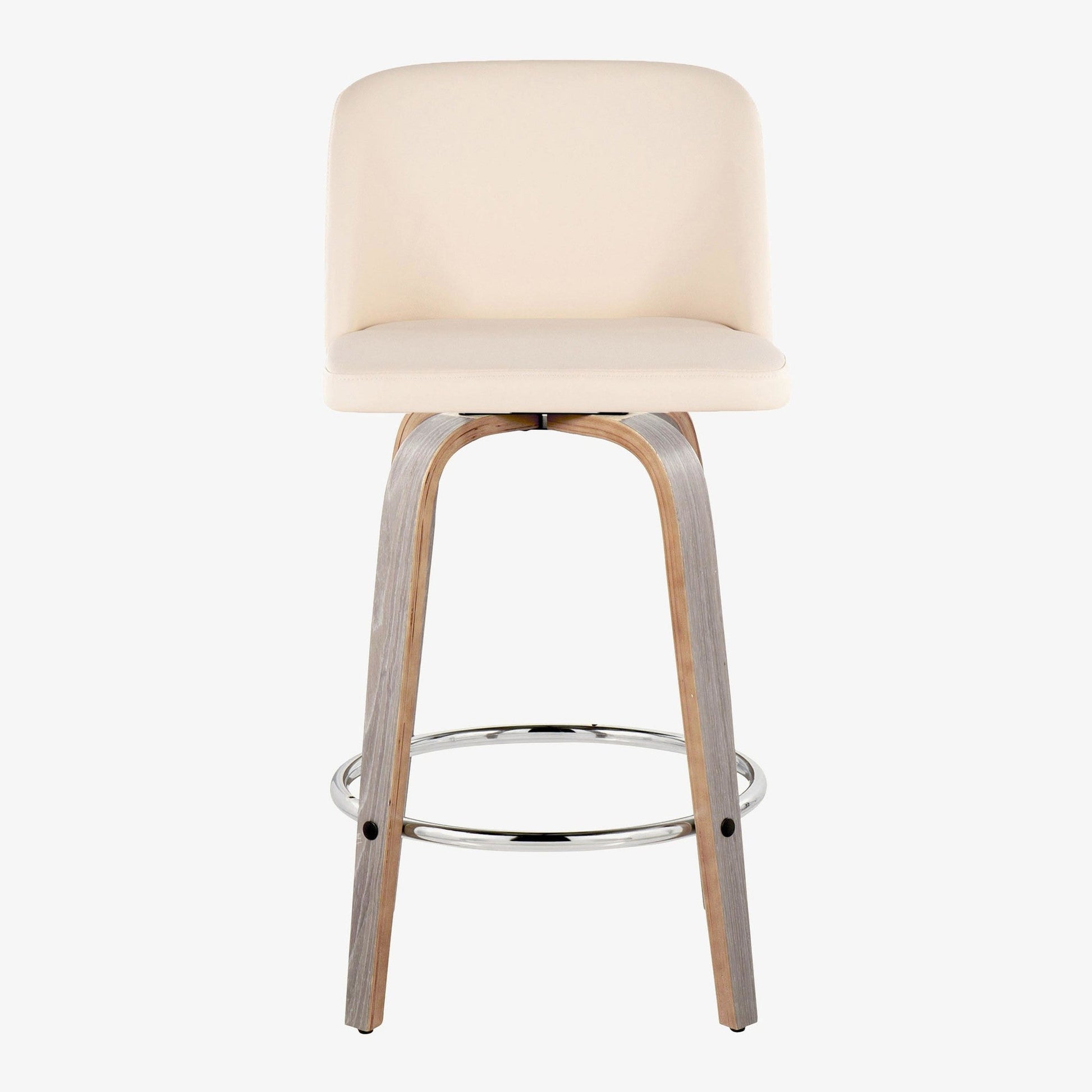 Bent wood legs with round chrome metal footrest