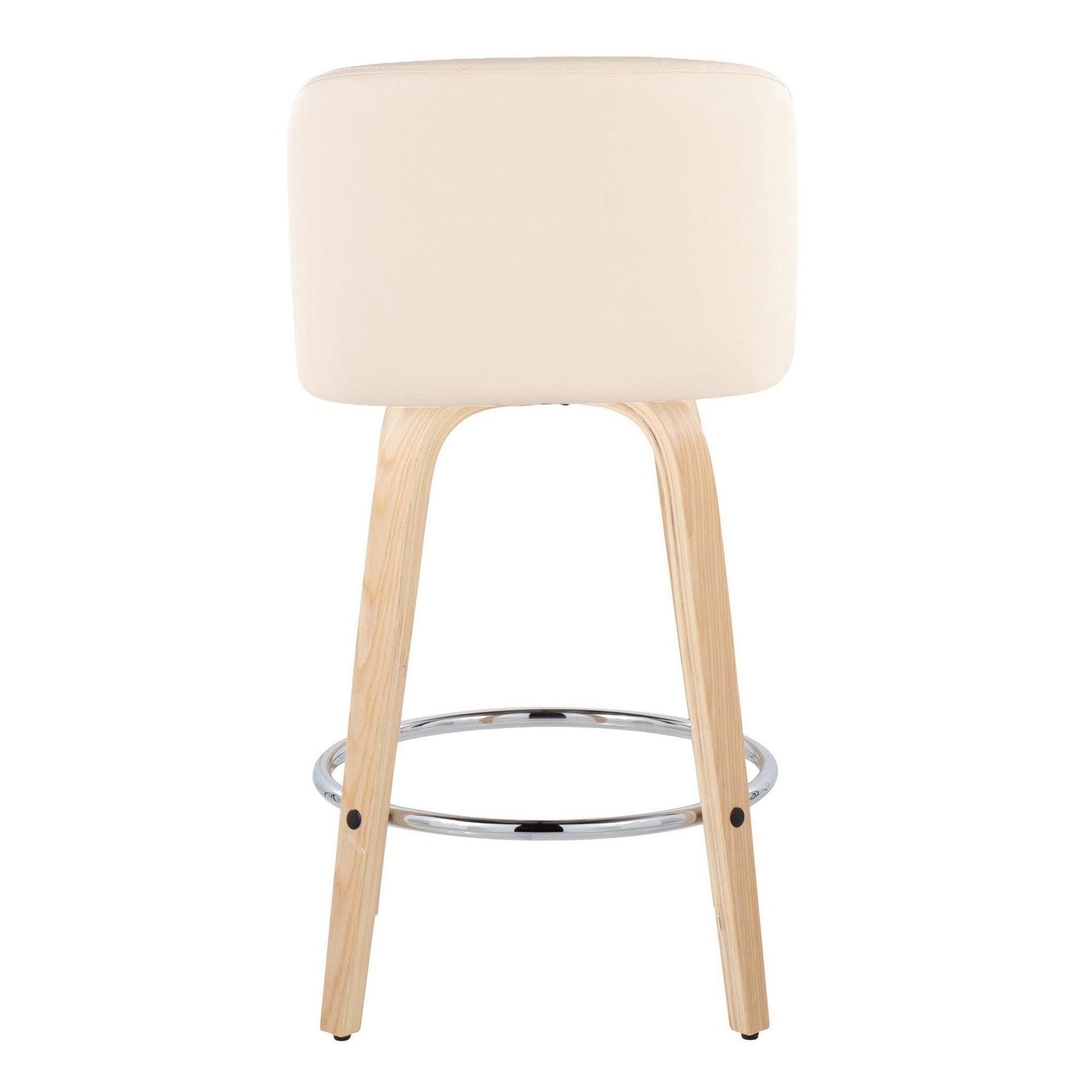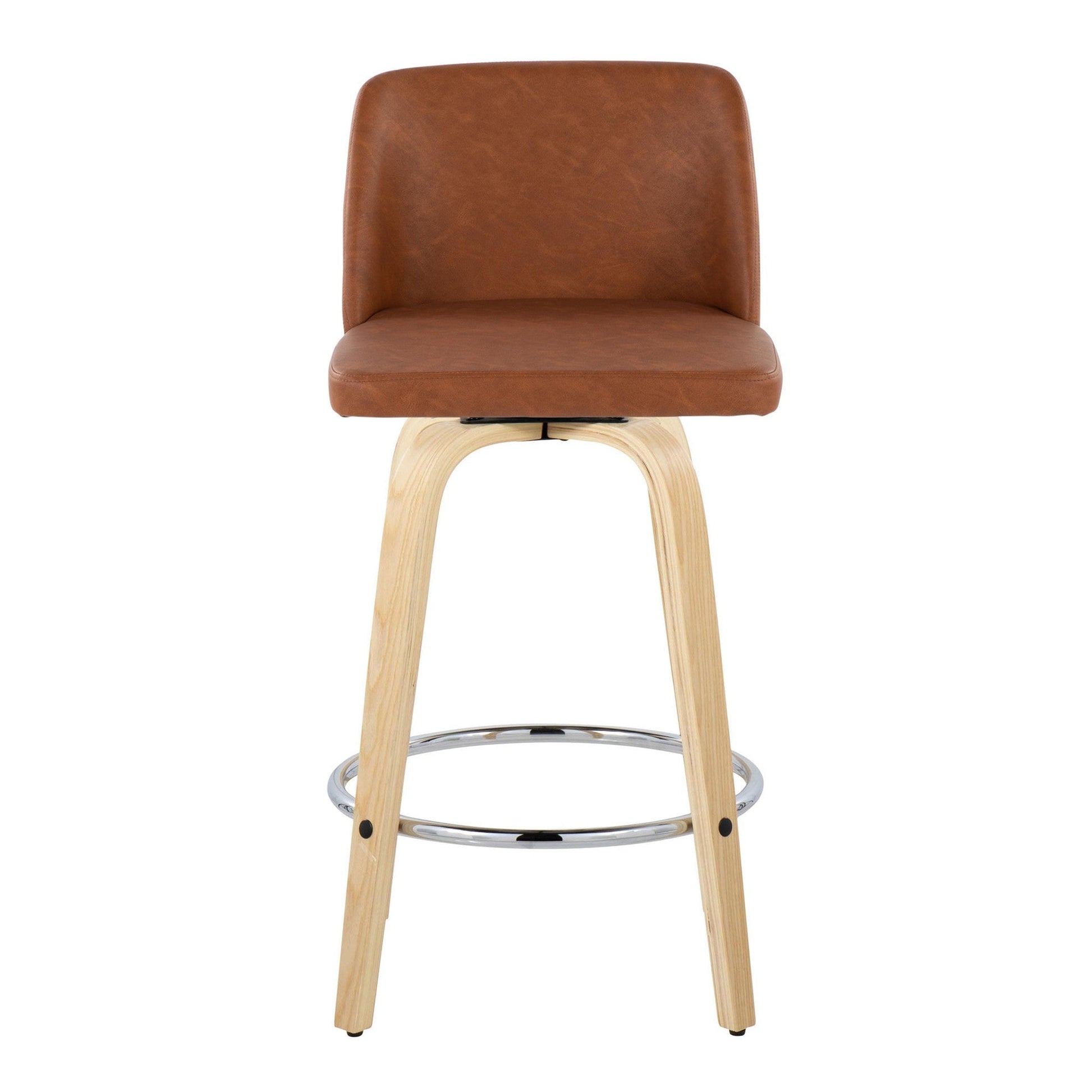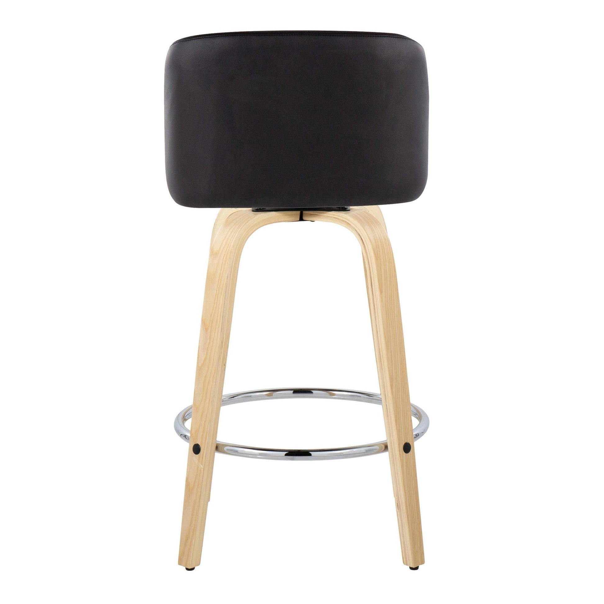Bent wood legs with round chrome metal footrest