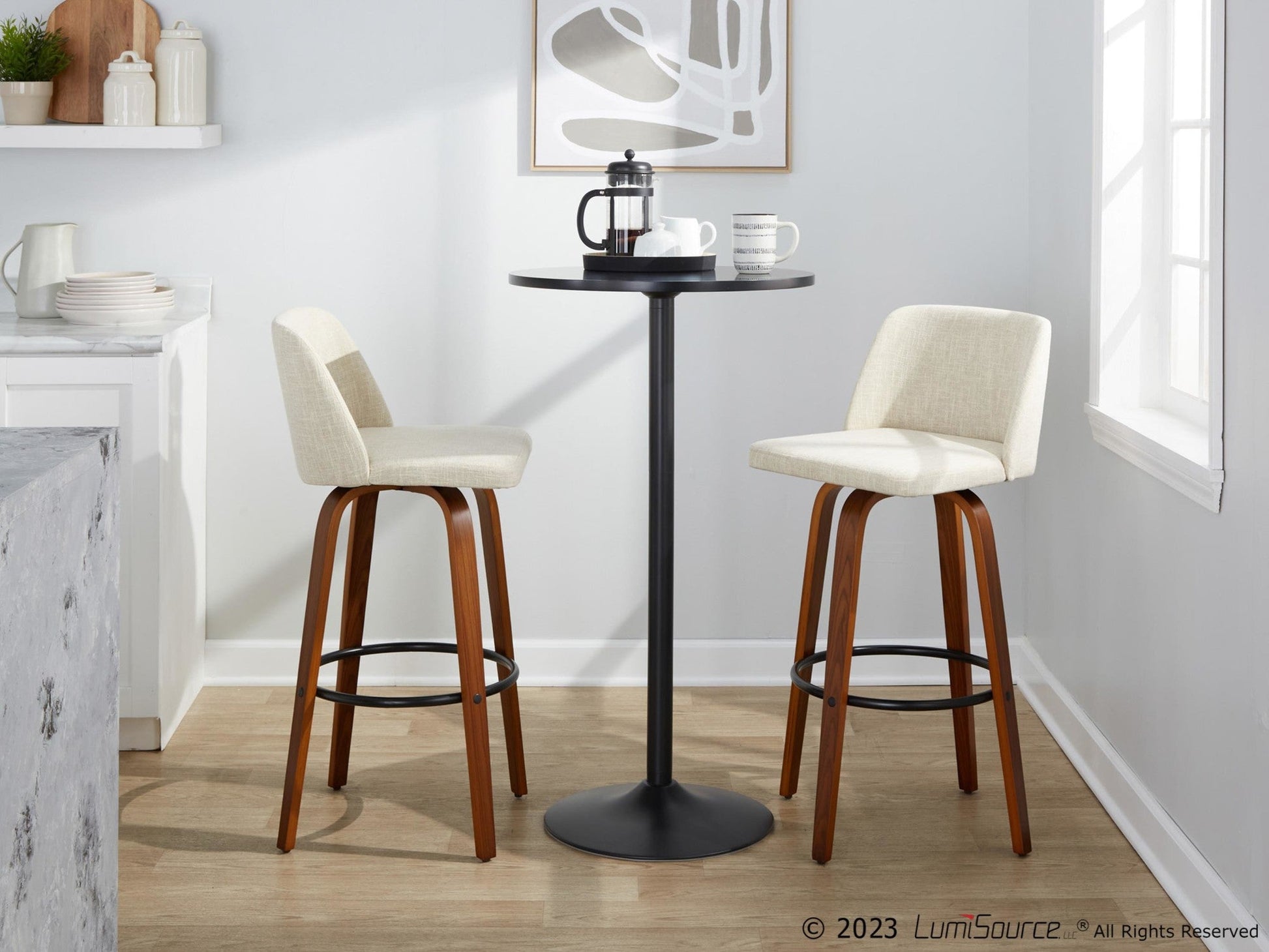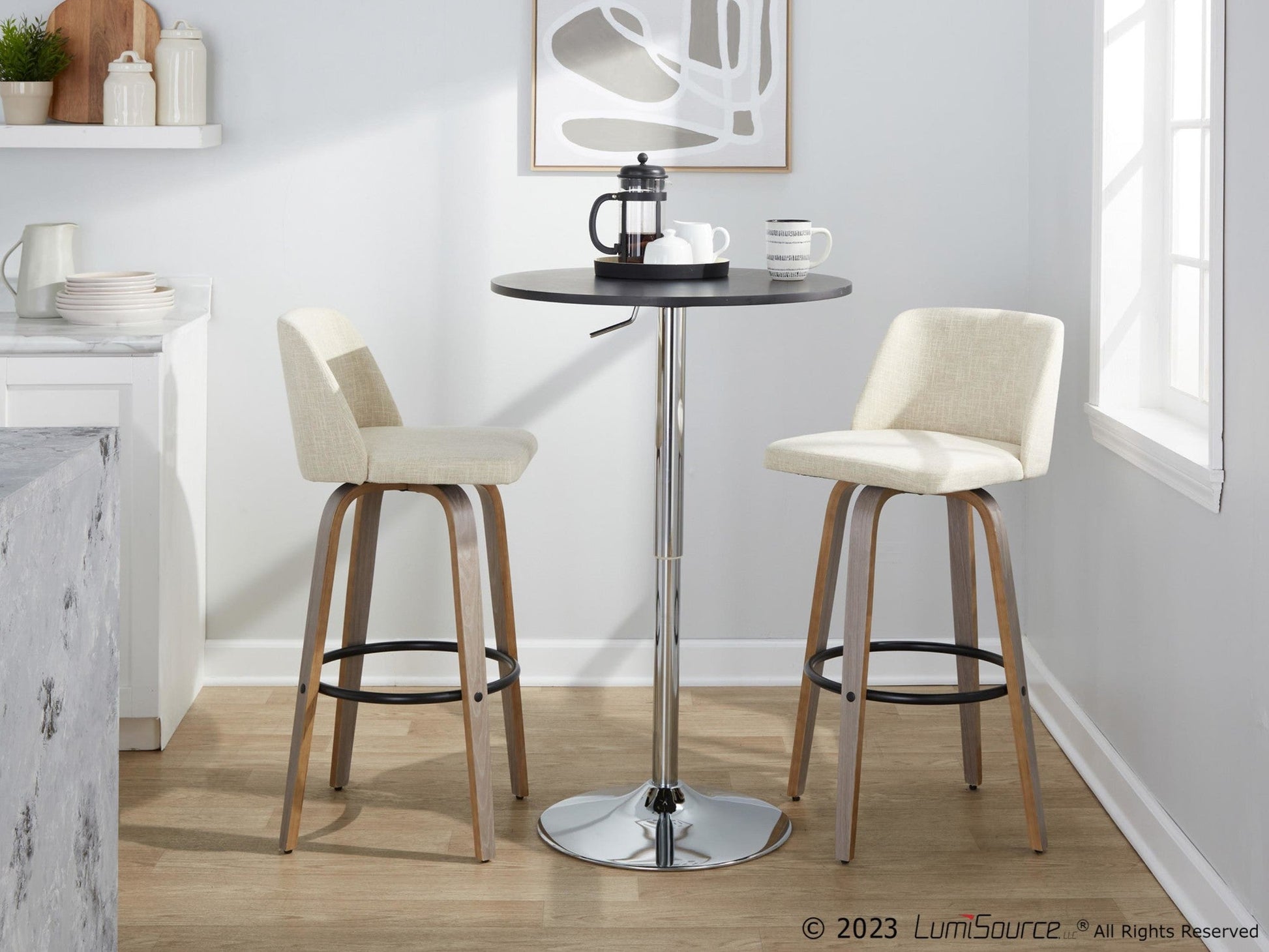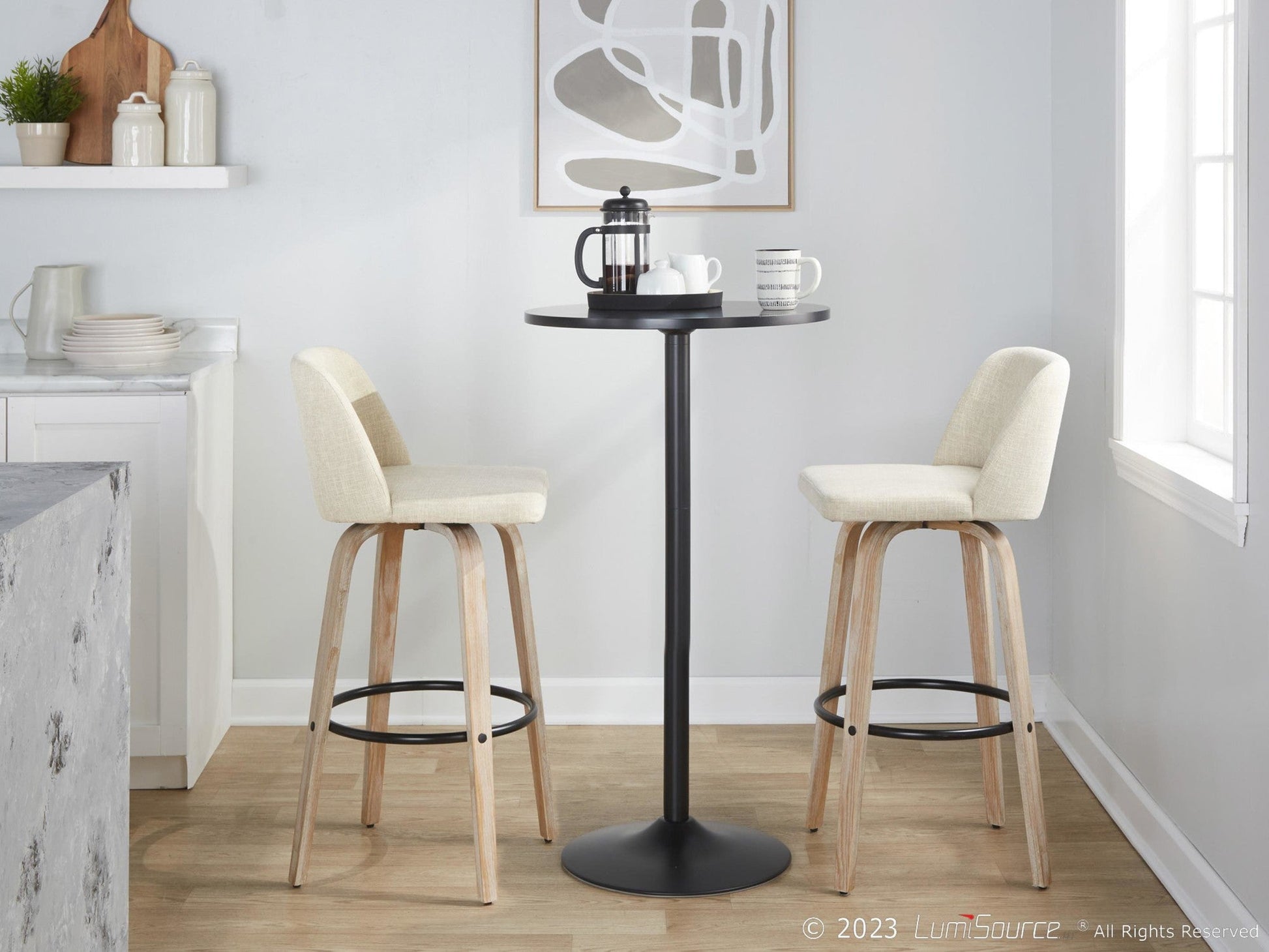 Comfort, modern simplicity, and classic lines define the appealing look of the Fixed-Height Barstool by Majestic Office Furniture. A padded upholstered swivel seat sits on fixed-height bent wood legs with a built-in footrest. Available in various colors, choose the one that suits your space best!