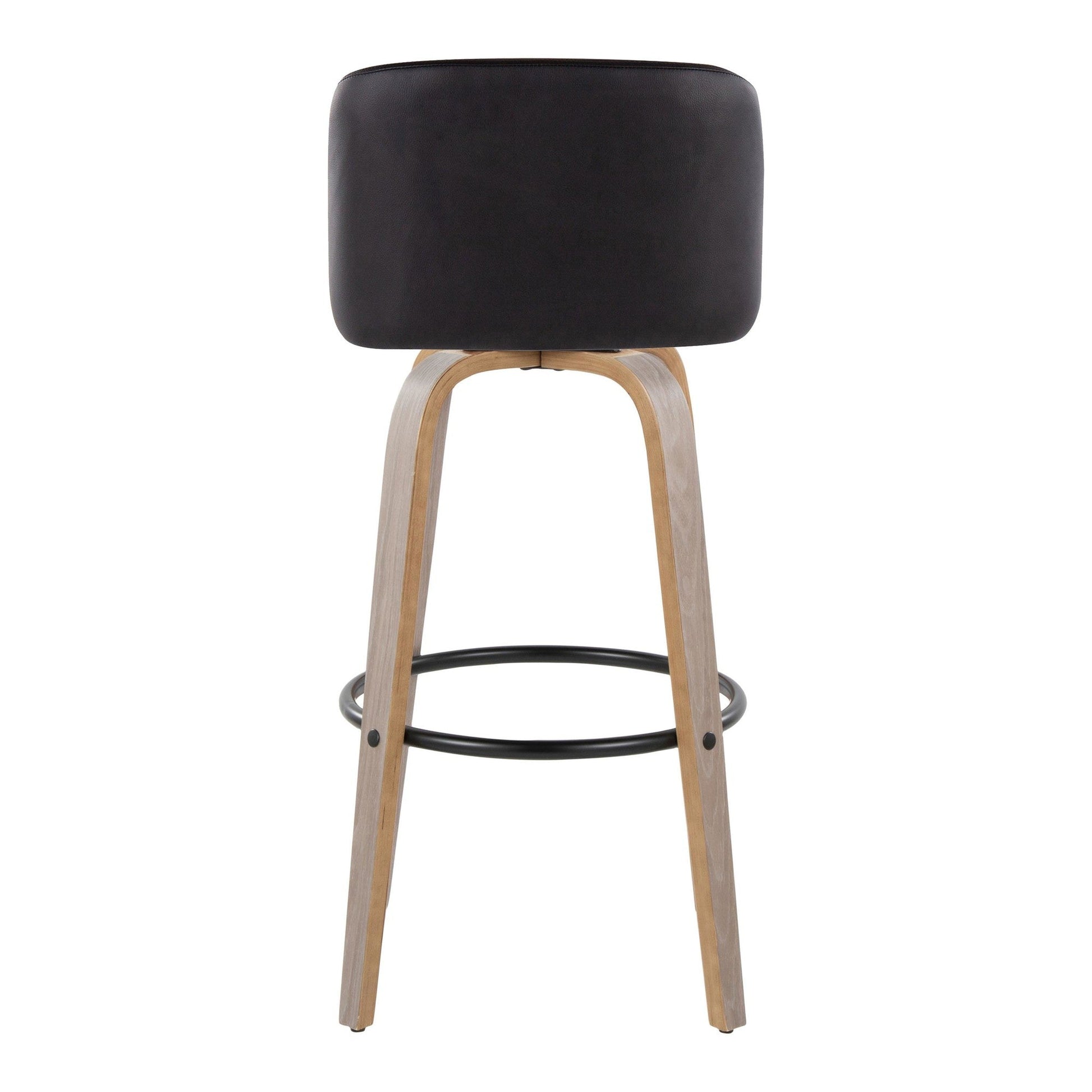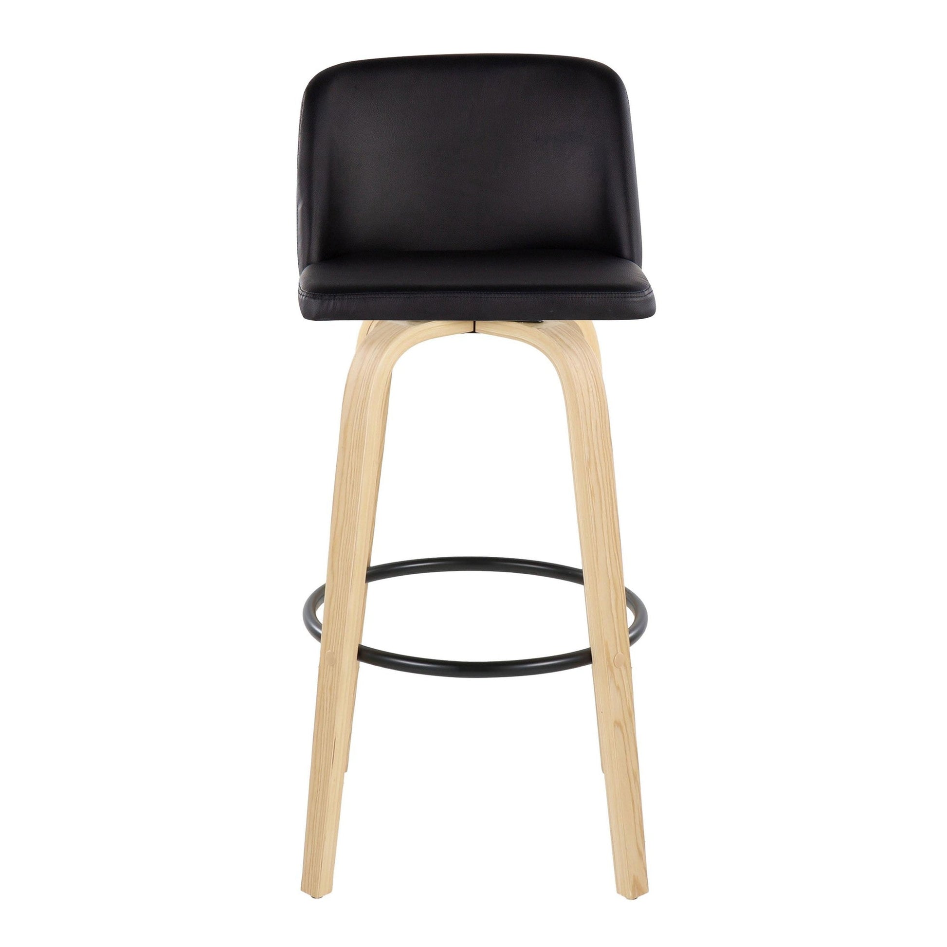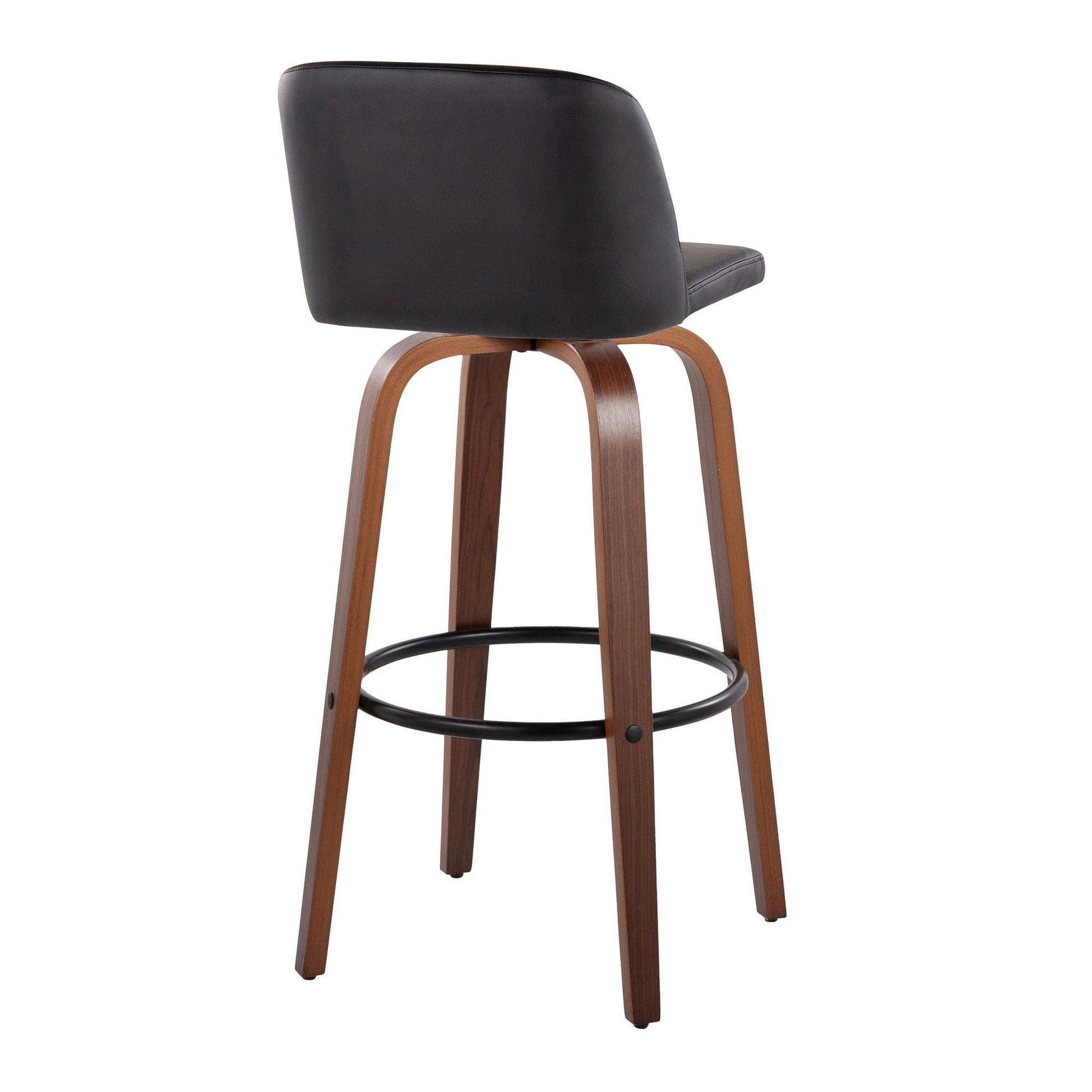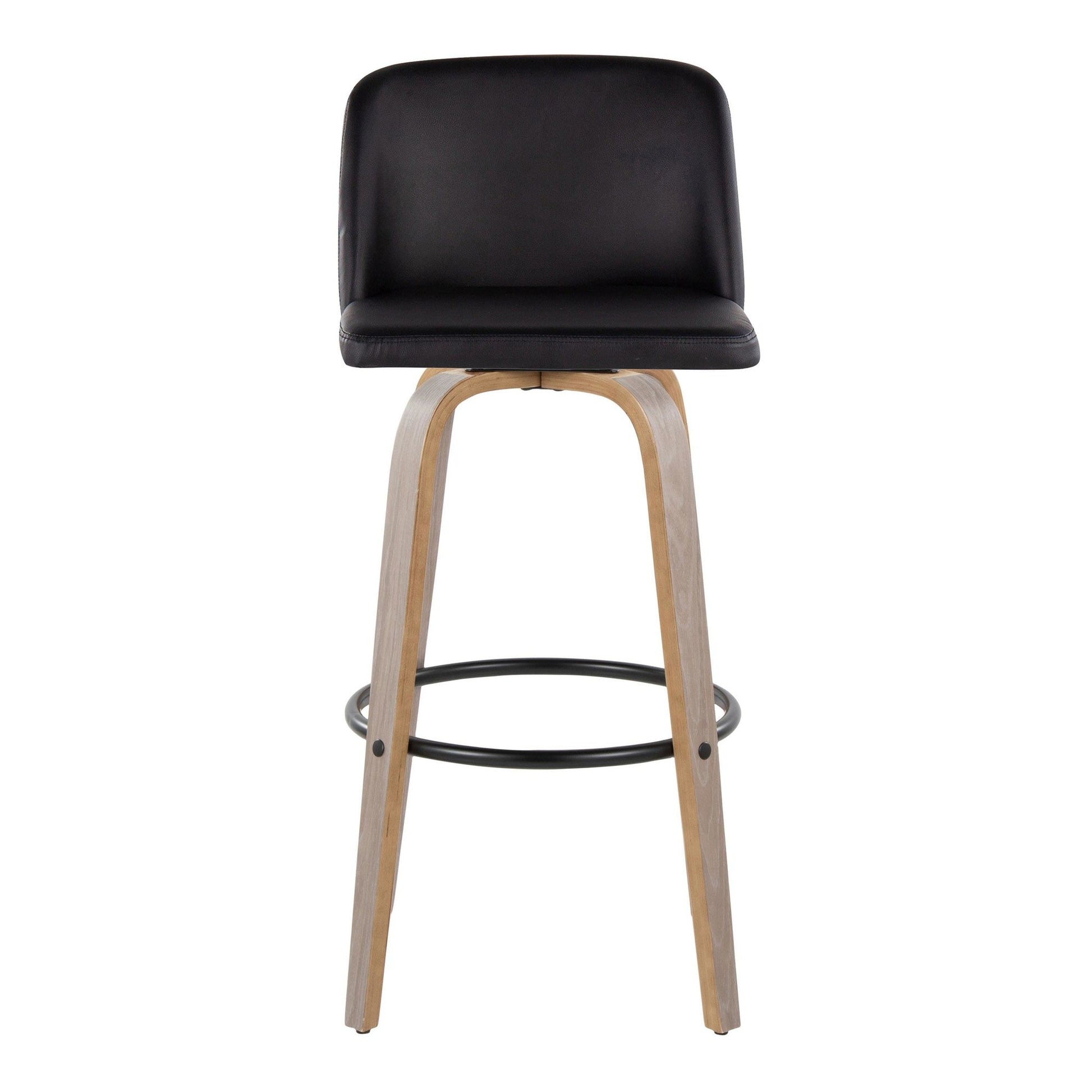 Bent wood legs with round black metal footrest