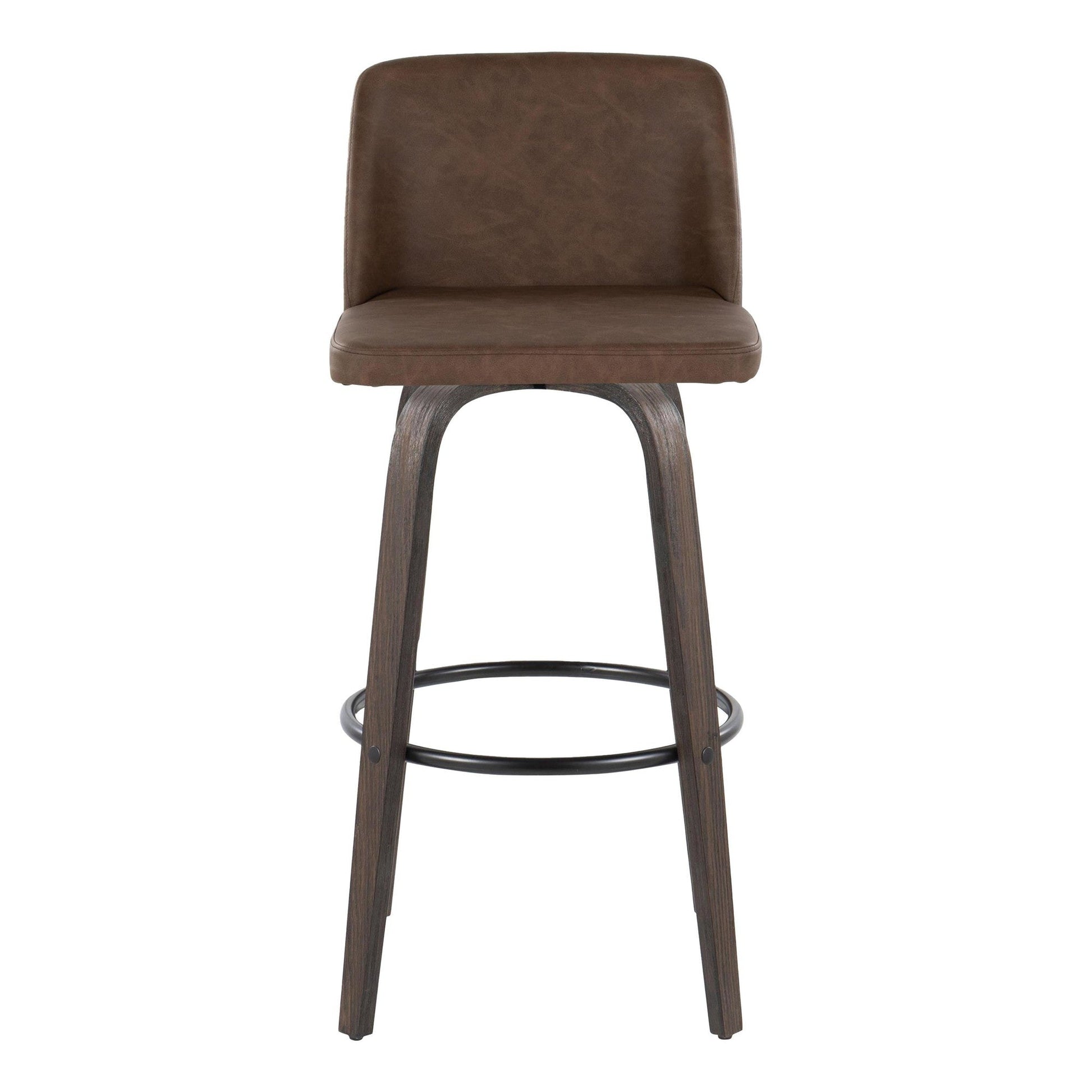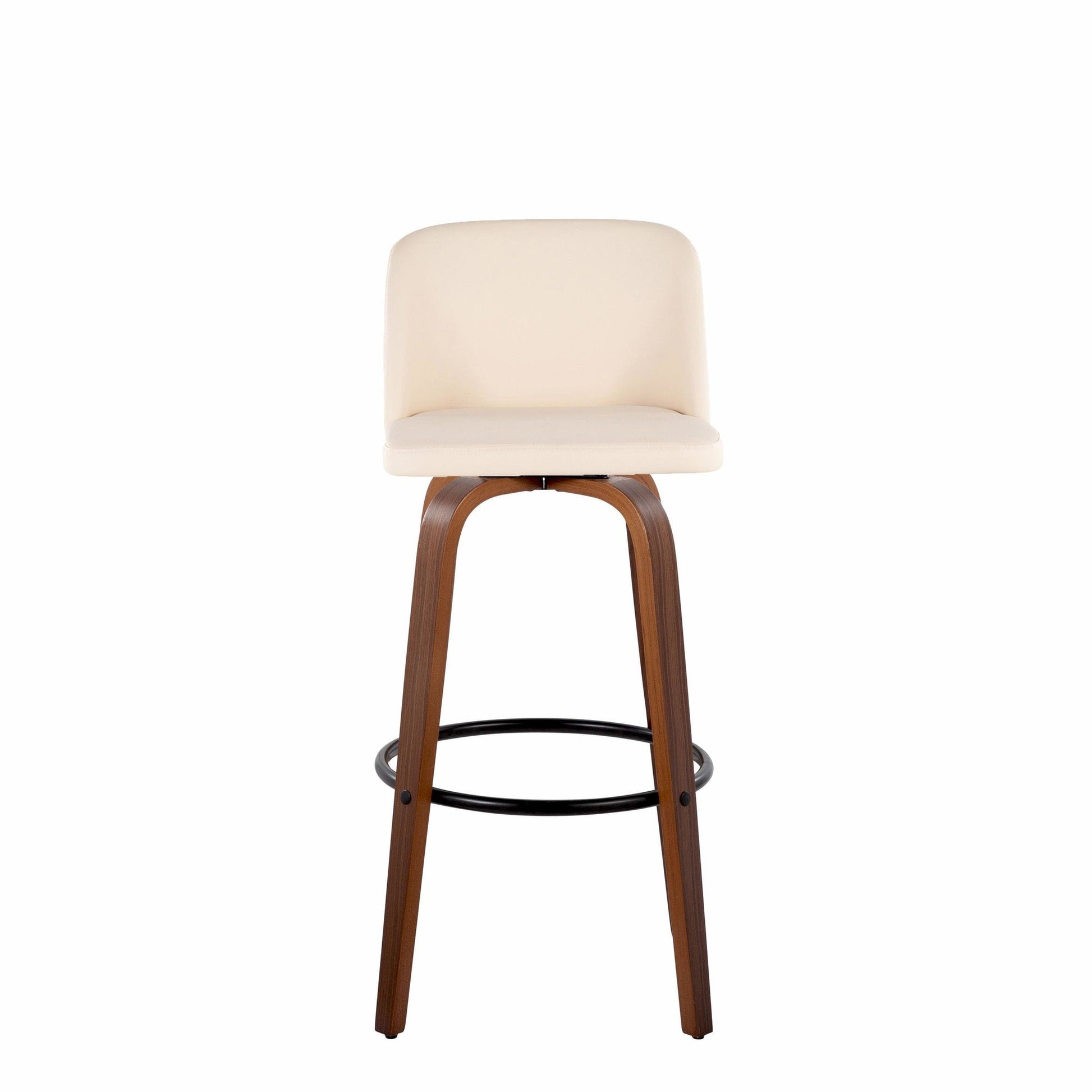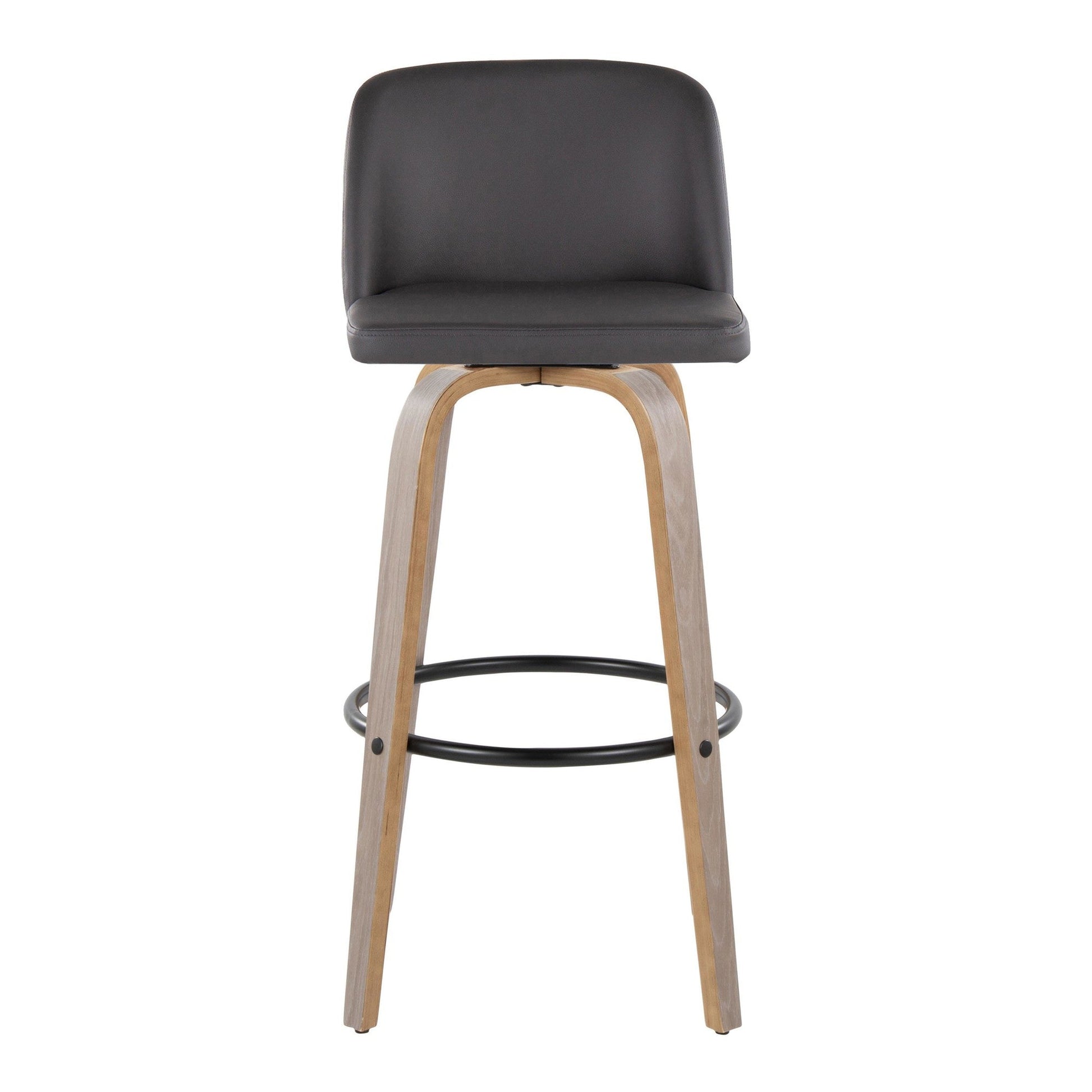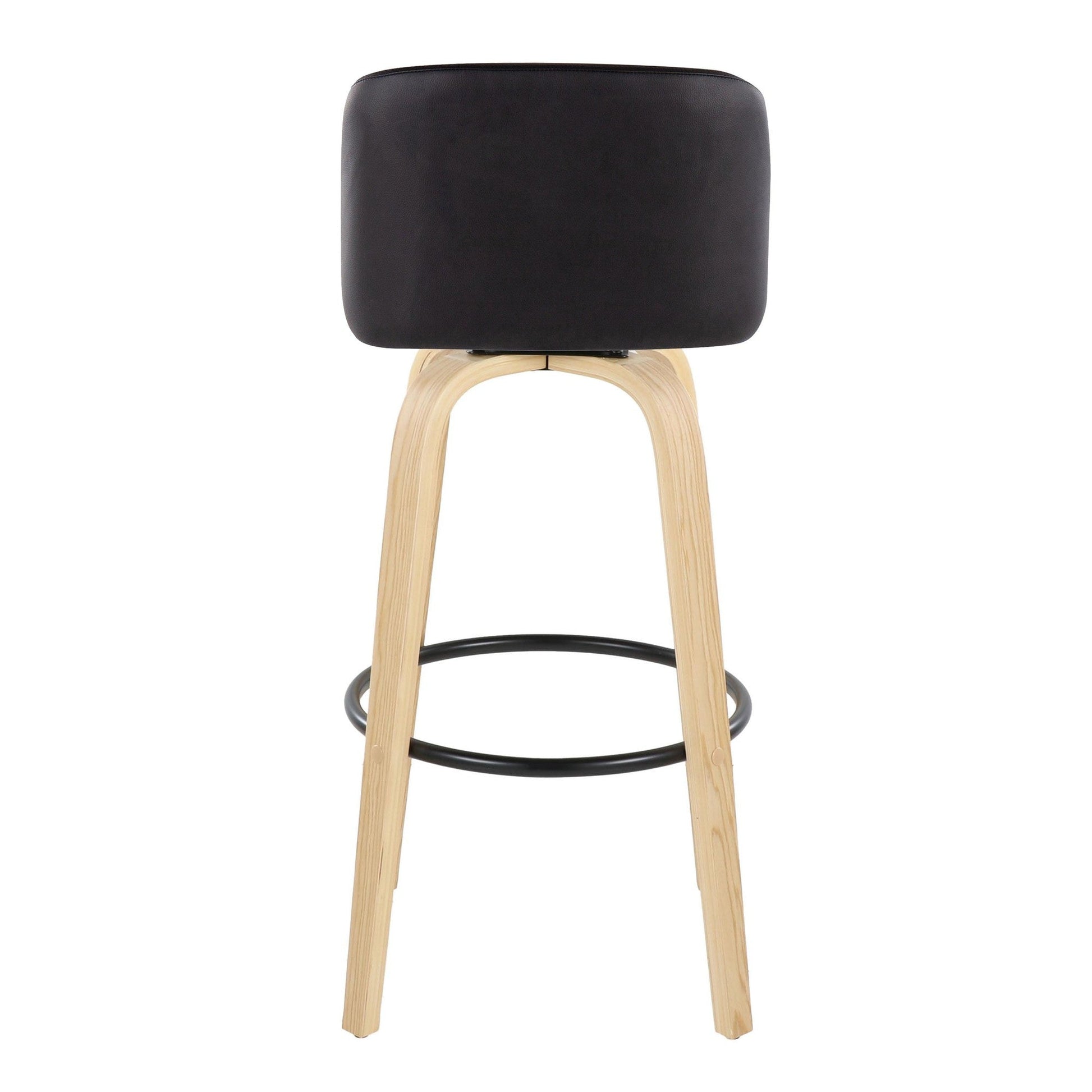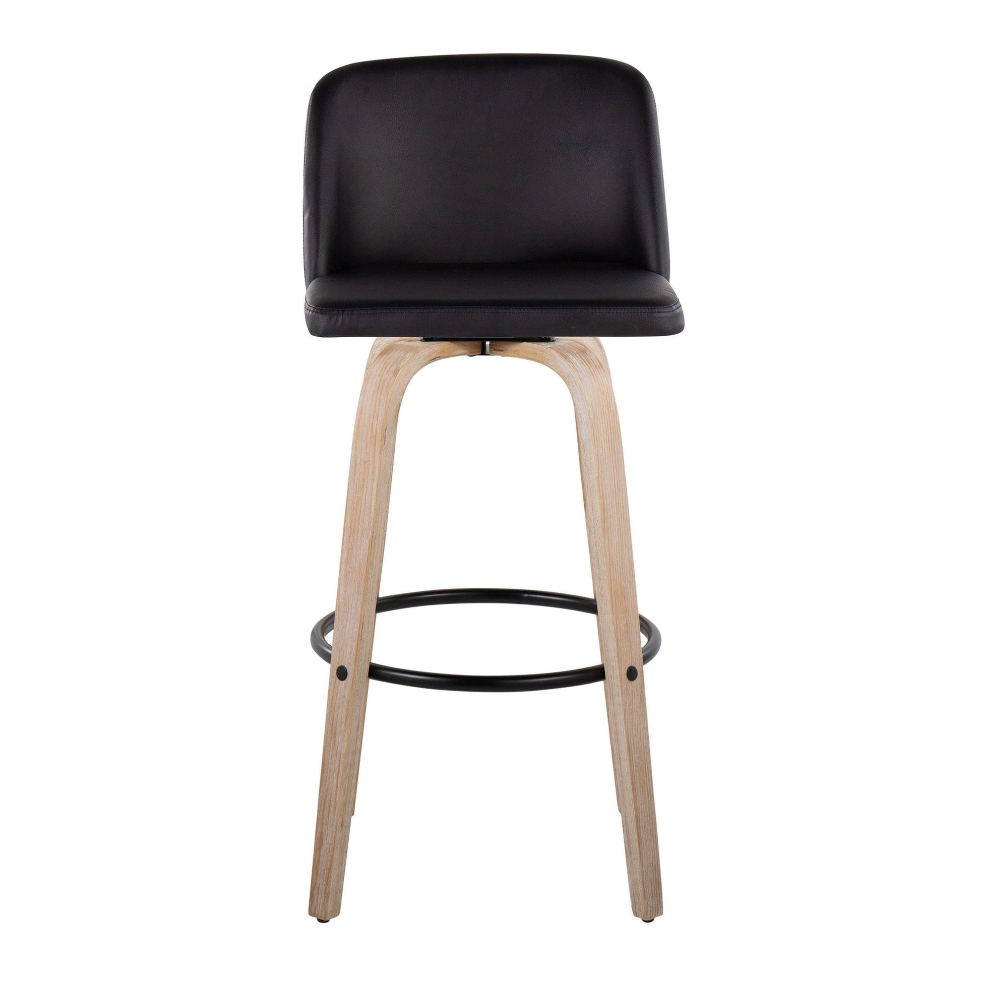 Bent wood legs with round black metal footrest