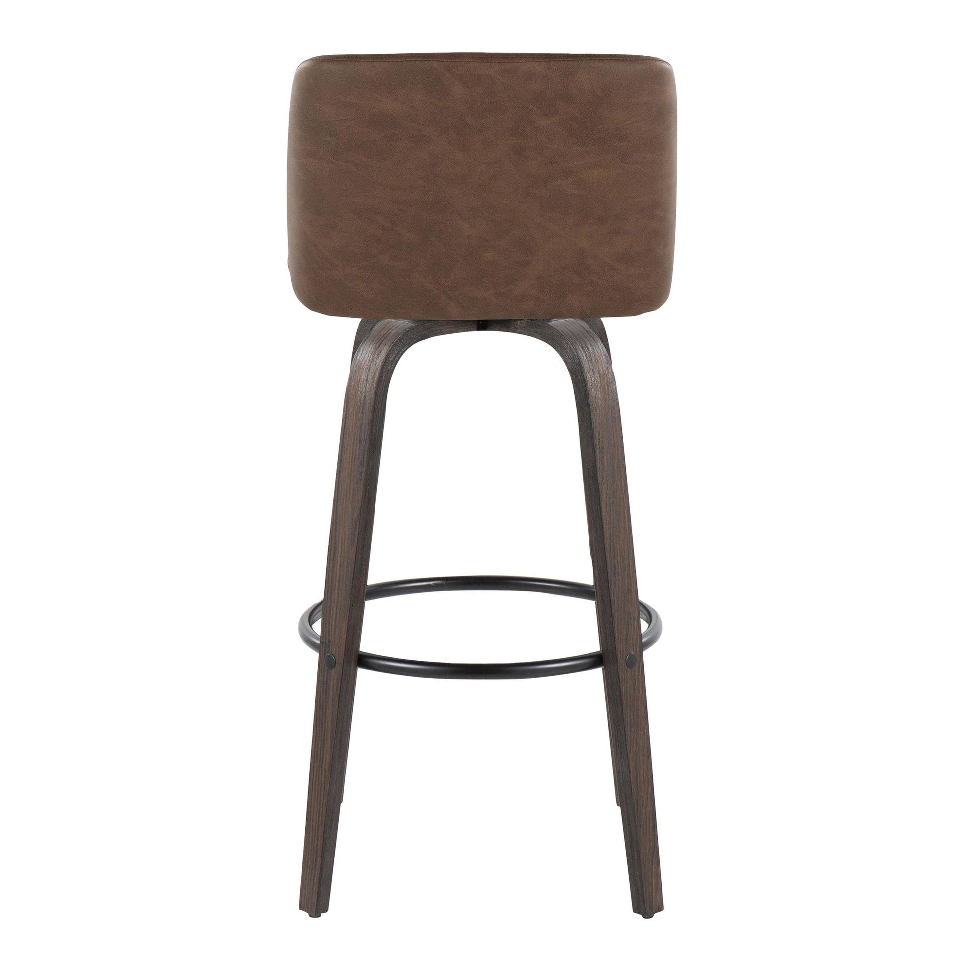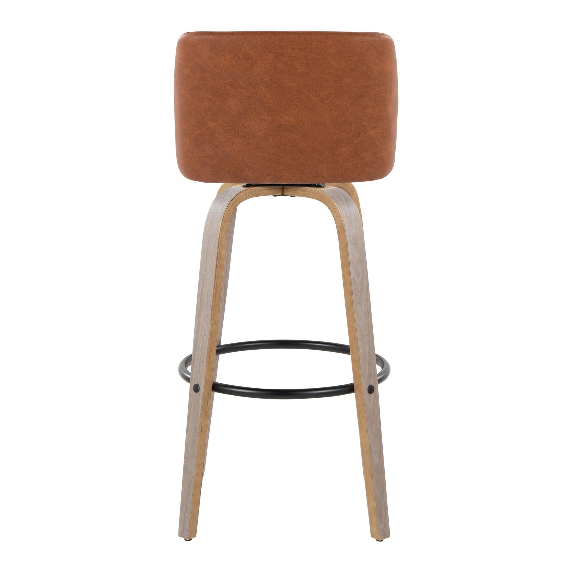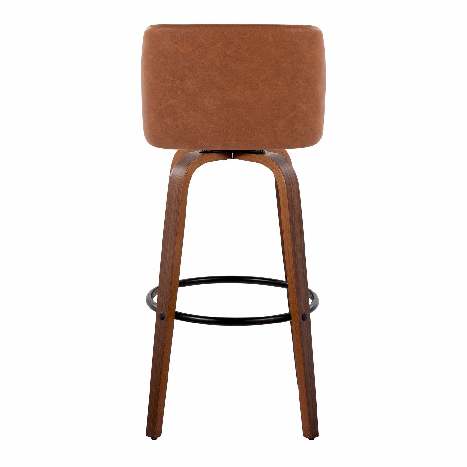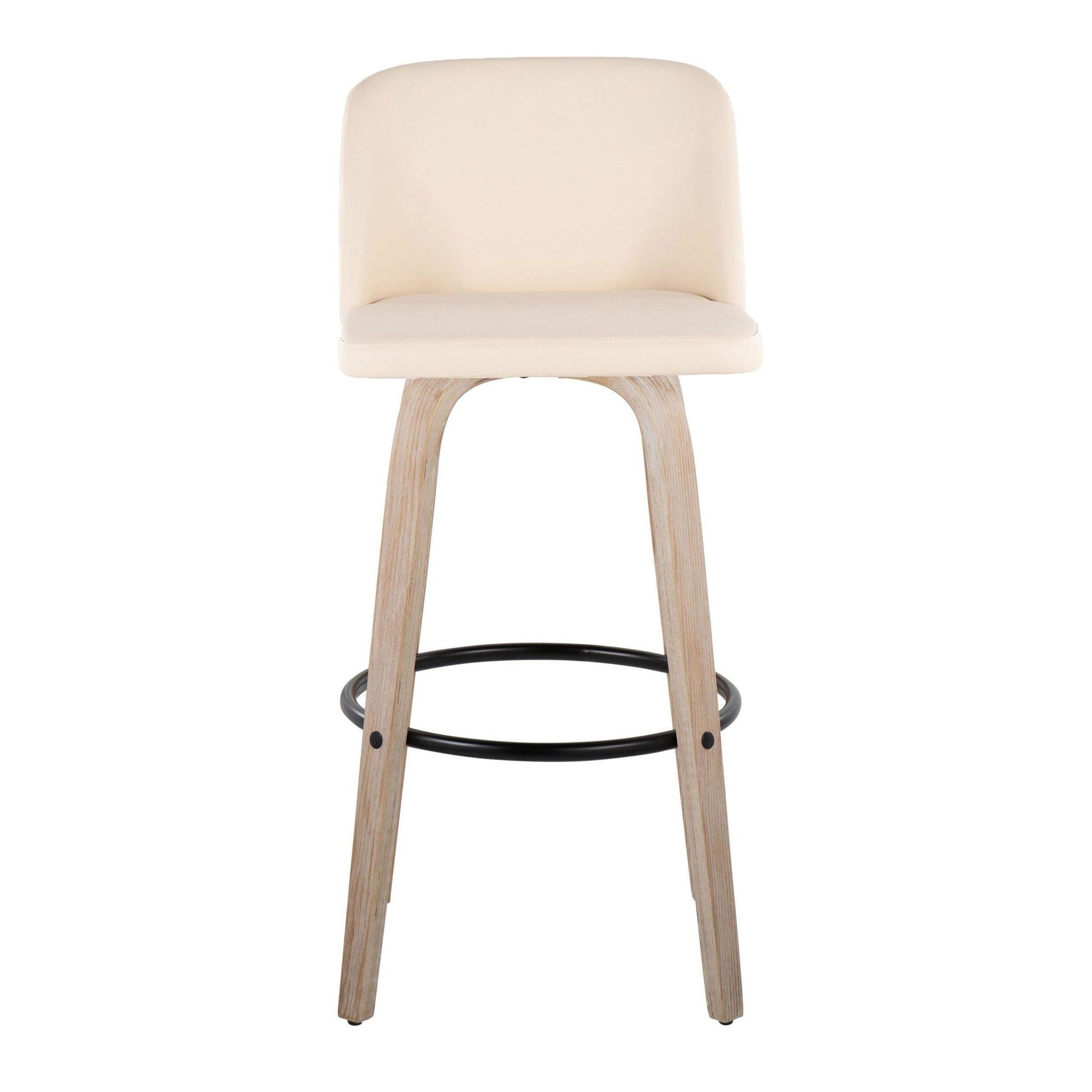 Bent wood legs with round black metal footrest