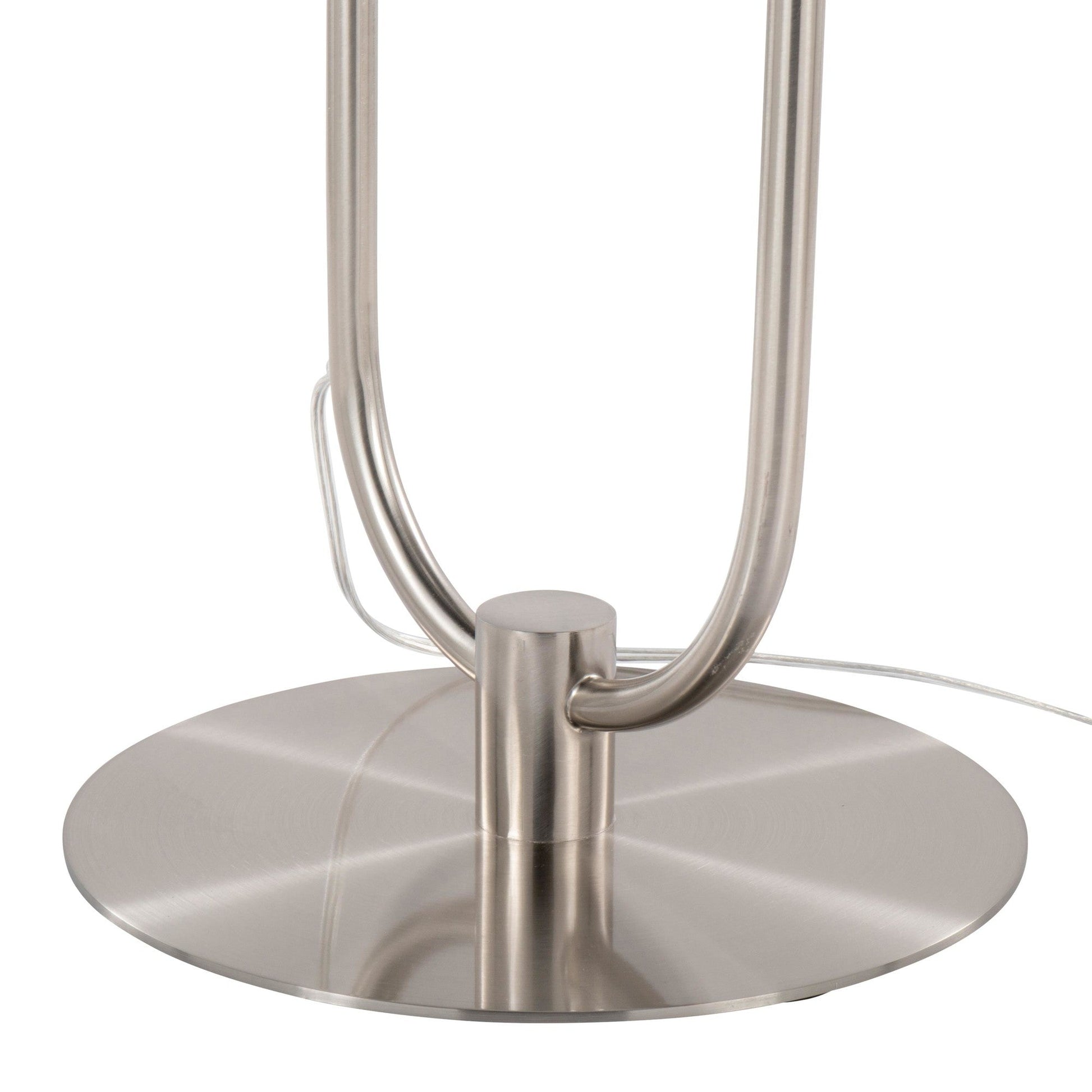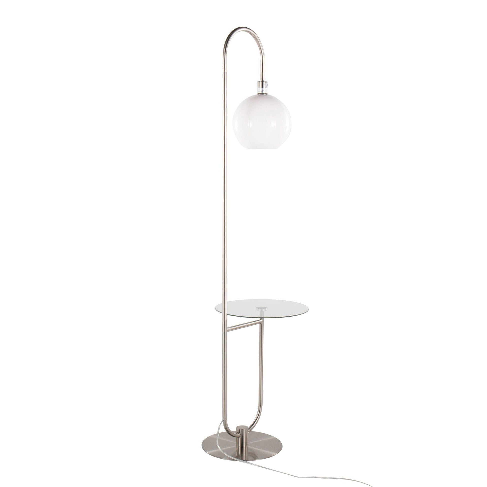 A chic mix of materials creates a contemporary look that will fit any room. The Floor Lamp by Majestic Office Furniture is the perfect size for smaller spaces. With a nickel frame, attached tempered glass table, and white round sconce, the will look great next to any sofa, accent chair, or even in a bedroom.